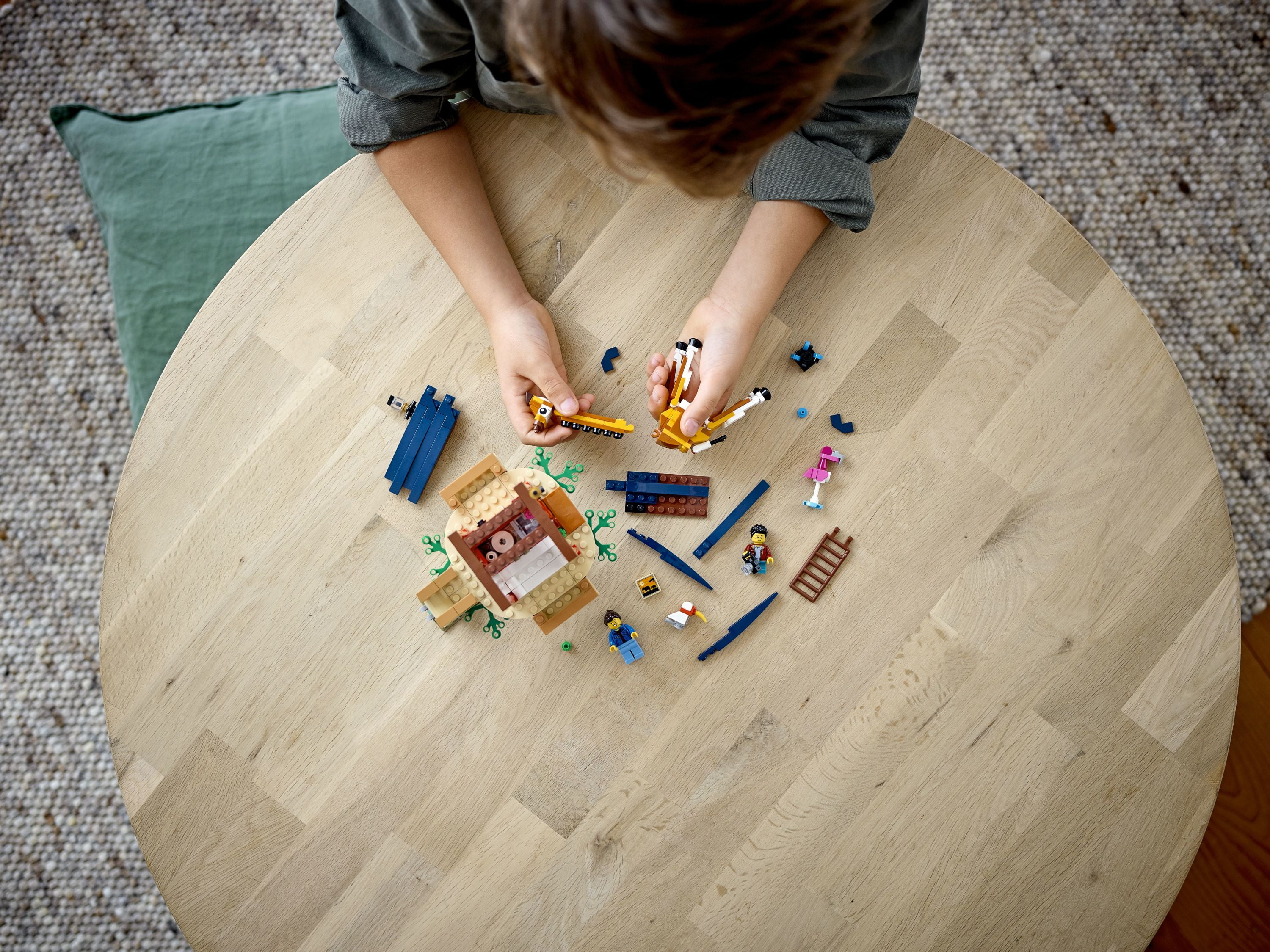 The LEGO Creator 3in1 Safari Wildlife Tree House (31116) building set will grip kids’ imaginations with 3 models in 1: a tree house toy, plane toy and boat toy This LEGO set includes boy and girl minifigures with a camera accessory to add even more fun to kids’ safari adventures The tree house toy features a balcony with a couch and ladder, an interior with a toilet and sink, plus 3 brick-built animals: a posable giraffe toy, flamingo toy and hornbill toy The biplane toy has a cockpit for a minifigure, plus a lion, a tree and an African lovebird, while the catamaran toy comes with an adjustable sail, a crocodile toy and marabou stork toy The 397-piece LEGO Creator 3in1 toy set offers a fun build to little animal fans aged 7 and up and is a great birthday or holiday gift guaranteed to make them happy