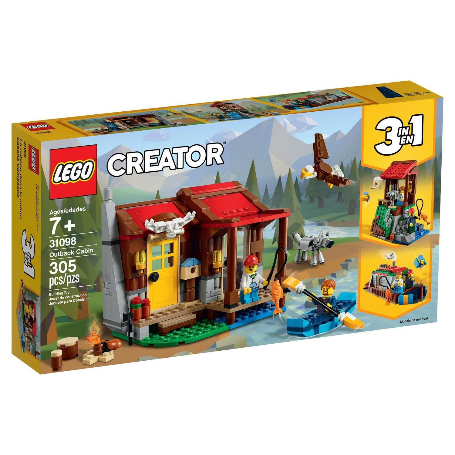 – Continue the outdoor LEGO adventures with this 3in1 set. Rebuild the Outback Cabin to create a Bird Watching Viewpoint or a Canal Boat