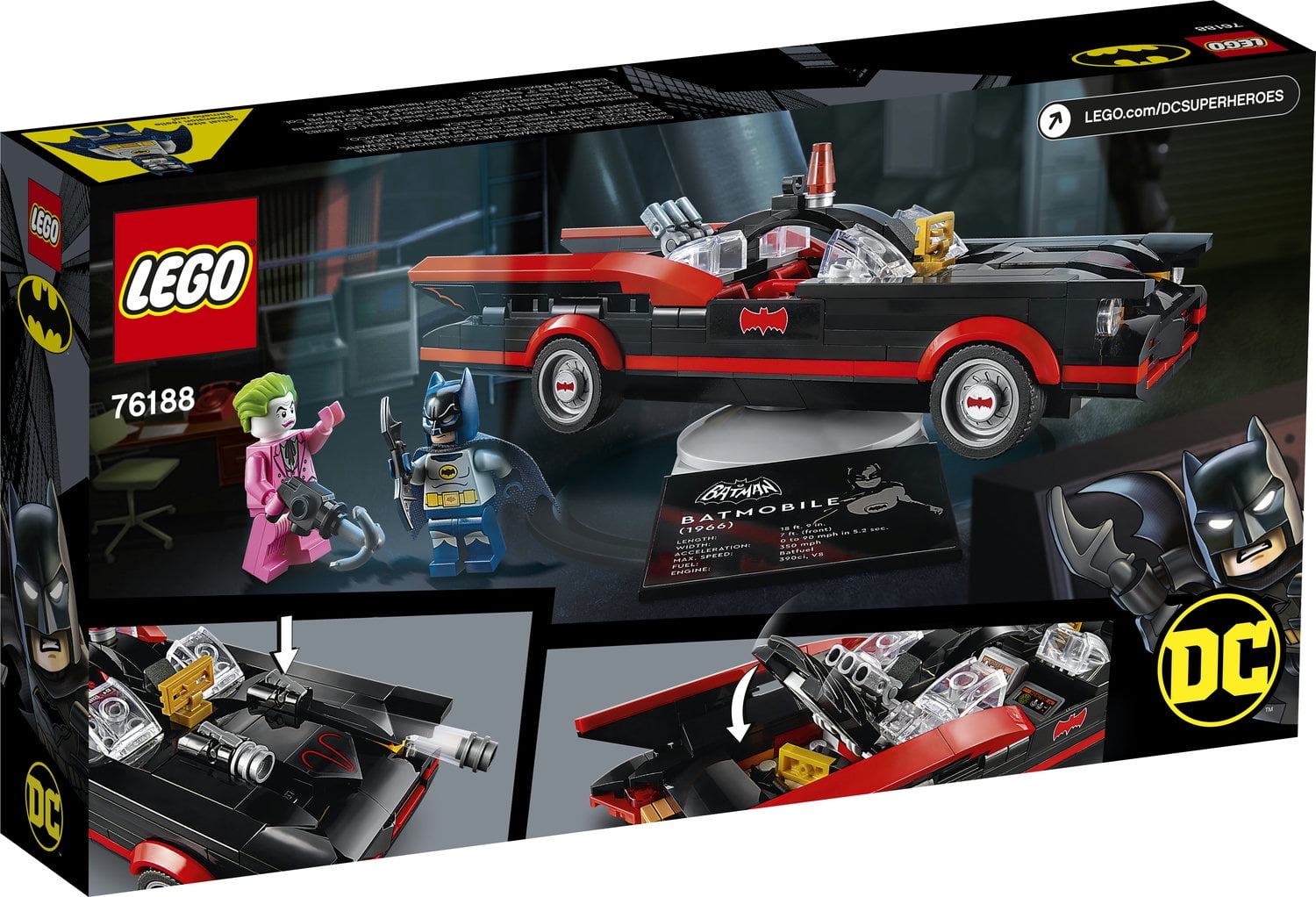 LEGO DC batman: Batman classic TV series Batmobile (76188) gives kids all the style, action, and excitement of the original 1966 Batman TV series. Kids can play out endless batman adventures with this impressive Batmobile, plus batman and the joker Minifigures from the original TV series. This amazing vehicle includes an opening trunk containing a Bata rang and additional bricks that kids can use to customize the car’s hood so it appears with or without the stud shooters. When the action’s over, the Batmobile can be displayed on a rotatable stand that lets kids display their awesome, crime-fighting machine at its best.