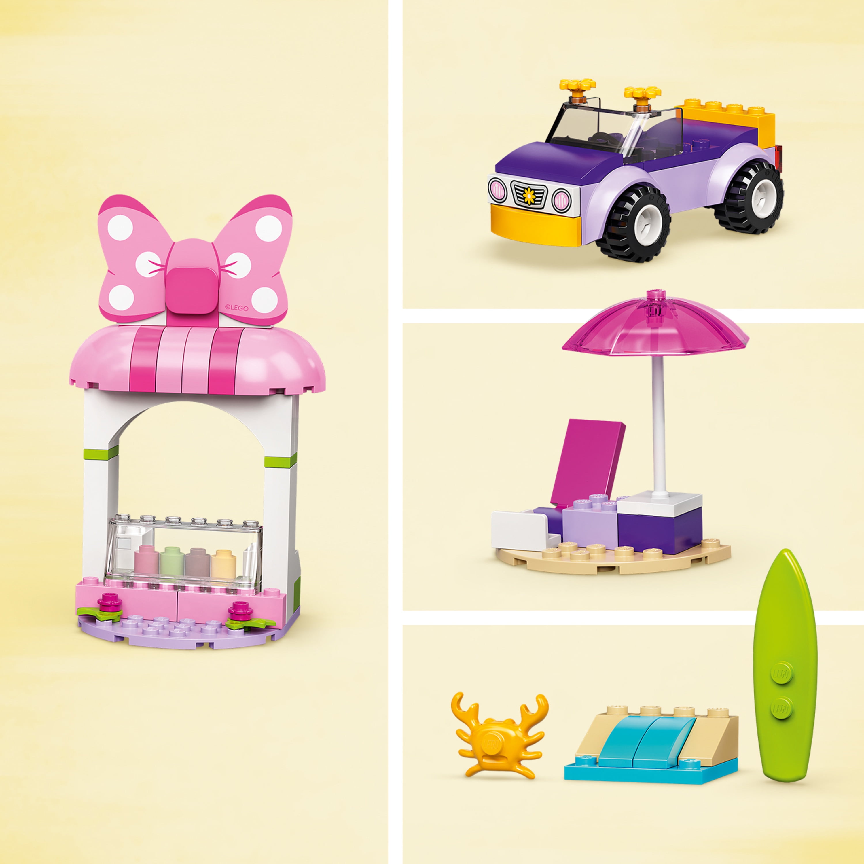 The set features an ice cream shop, a car with a Starter Brick chassis, to help get the building going, plus Minnie Mouse and Daisy Duck minifigures and an exclusive Mickey silhouette tile
