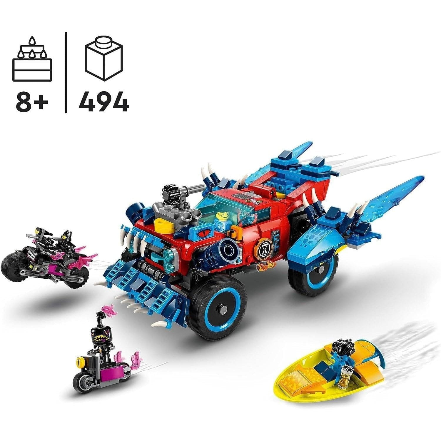 Lego Dreamzzz Crocodile Car 71458 He can quickly travel to a dream world with the LEGO® DREAMZzz™ Crocodile Car (71458) toy building set. Based on the TV series, kids can create an incredible car to save Jayden from the terrifying Night Stalker! 1 set, 2 building options The 2 building options and lots of story-based instructions in the playset encourage kids to choose their own adventure and enjoy double the playtime. They can decide to build a crocodile car to fight nightmares, or a super-fast all-terrain vehicle or mini-boat to chase them away. In Crocodile mode, the vehicle has movable arms and legs and a disc shooter hidden in the front grille so kids can shoot discs from the crocodile’s mouth. In Truck mode, the vehicle has spinning wheels and a roof that can be removed to fit a minifigure inside. The awesome minifigures construction toy set includes minifigures of Cooper and Jayden, plus a cool toy motorcycle and the Night Stalker with his evil sidekick. The Night Stalker has captured Jayden and you must help save him! Join Cooper and Logan as they use their dream transformation skills to build the perfect car and rescue their friends. Choose from a crocodile car with a disc launcher to defeat nightmares or a super fast all-terrain vehicle and mini boat to chase them away. Customizable vehicle Kids can enjoy imaginative play with the LEGO® DREAMZzz™ Crocodile Car toy building set (71458), allowing them to build one of 2 vehicles 2 ways to build Kids can choose to build the car as a crocodile car or a modified super-fast off-road vehicle Crocodile mode In crocodile mode, the car shoots discs from its grills (from the crocodile’s mouth) and has movable arms and legs that make it easy for kids to play and create adventures Off-road vehicle mode In off-road vehicle mode, the vehicle’s wheels spin and the roof can be removed so kids can fit a minifigure inside 3 minifigures This set includes Cooper, Jayden and Night Includes Hunter minifigures Social or solo play This set is designed for children ages 8 and up who can play for hours on their own or with friends Dimensions In its largest form, the model was 8 cm high, 45 cm long and 15 cm wide Companion app The set’s story-based building instructions are also available digitally in the LEGO® Builder app Premium-quality LEGO® bricks are designed to build consistently every time Safety guaranteed LEGO® bricks are rigorously tested to ensure they meet strict safety requirements Kids will love building with these LEGO® bricks and bricks. Build one of 2 vehicles with the LEGO® DREAMZzz™ toy construction set Kids can build the car in 2 modes – crocodile mode and off-road vehicle mode In crocodile mode, the car has movable arms and legs In off-road vehicle mode, the car’s wheels turn The set includes 3 minifigures This set is designed for children aged 8 years and up In its largest form, the model measures 8 cm high and 45 cm long LEGO® Builder app includes digital version of building instructions LEGO® bricks are made from quality materials LEGO® bricks meet rigorous safety requirements Suitable for children 8 years and older.