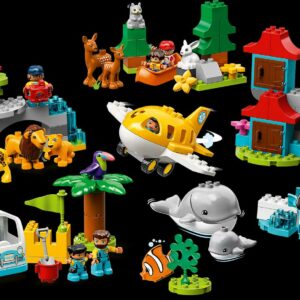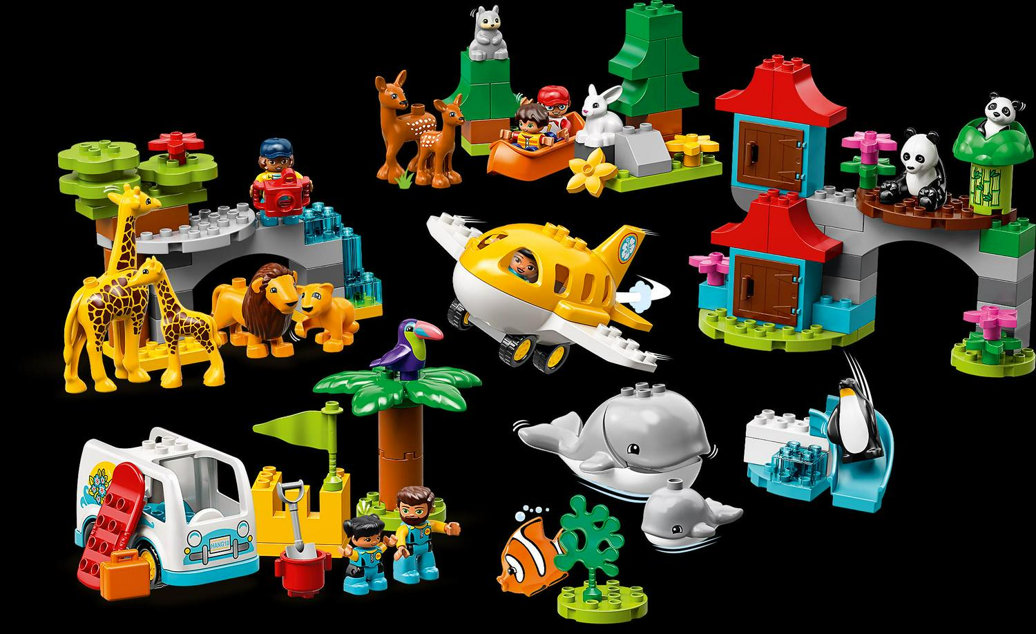 – Also includes 15 DUPLO toy animal figures: an adult and baby giraffe, adult and baby lion, adult and baby panda, adult and baby deer, adult and baby whale, penguin, toucan, fish, rabbit and a squirrel