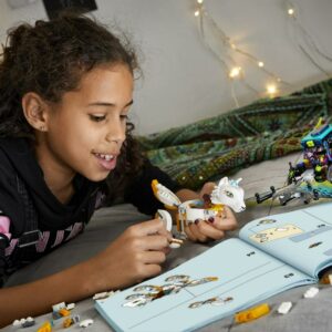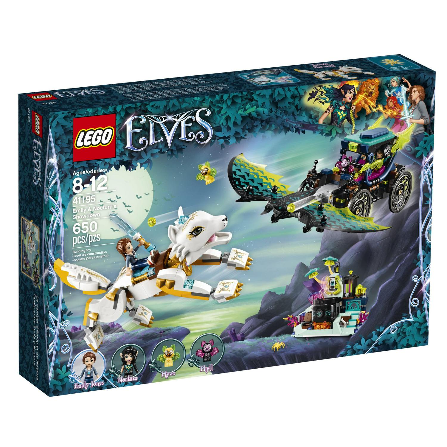 Seek the magic within to face evil in LEGO Elves 41195 Emily & Noctura s Showdown! This awesome set features a laboratory building with magic cauldron, function to make a bat appear, 2 hanging bat beds and 2 small nooks. This LEGO Elves set also includes a buildable, fully posable wolf figure with space for a mini-doll and a carriage with flapping wings, 2 crossbow shooters and an opening roof. Includes 2 mini-doll figures, plus 2 bat figures and a spider figure.