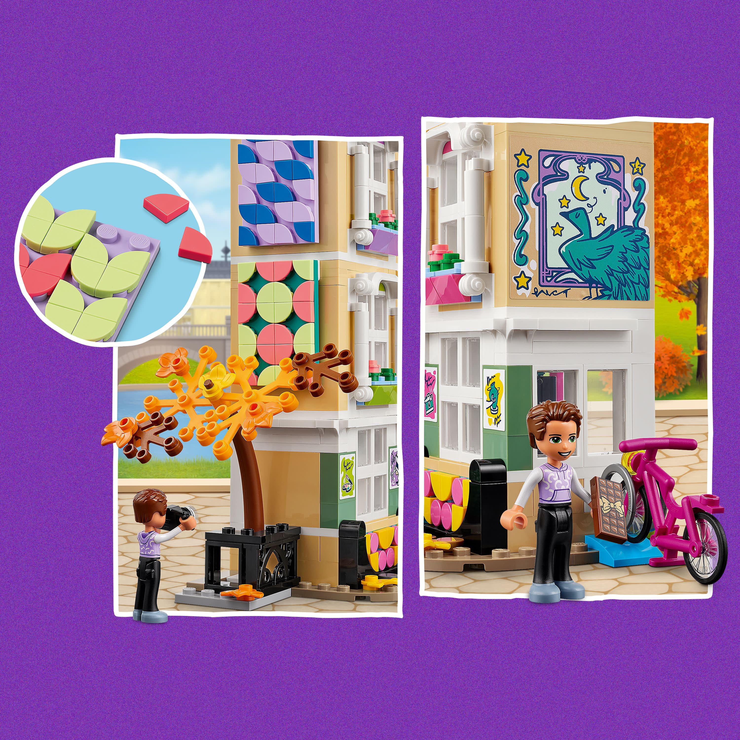 Inspire kids to be creative with the Emma’s Art School (41711) set, a great gift for kids aged 8+. Inside the beautiful building are 3 floors full of creative art toys, where boys and girls play with LEGO Friends Emma as she learns the art of ceramics, fashion and 3D printing. This pretend-play school set comes with an assortment of cute details: the pottery wheel spins by turning the handle, the camera comes with 2 lenses and the posable mannequin spins on its stand. The beautiful French-style building, with its large windows and creative sign comprised of a brush and a pen, is a work of art in itself! Kids can make it even more attractive by customizing it however they choose with the included LEGO DOTS tiles. This LEGO art set comes with digital instructions available free on the LEGO Building Instructions app. They allow kids to view their model in 3D, rotate it and zoom into it mid-build. It’s construction for the digital age!