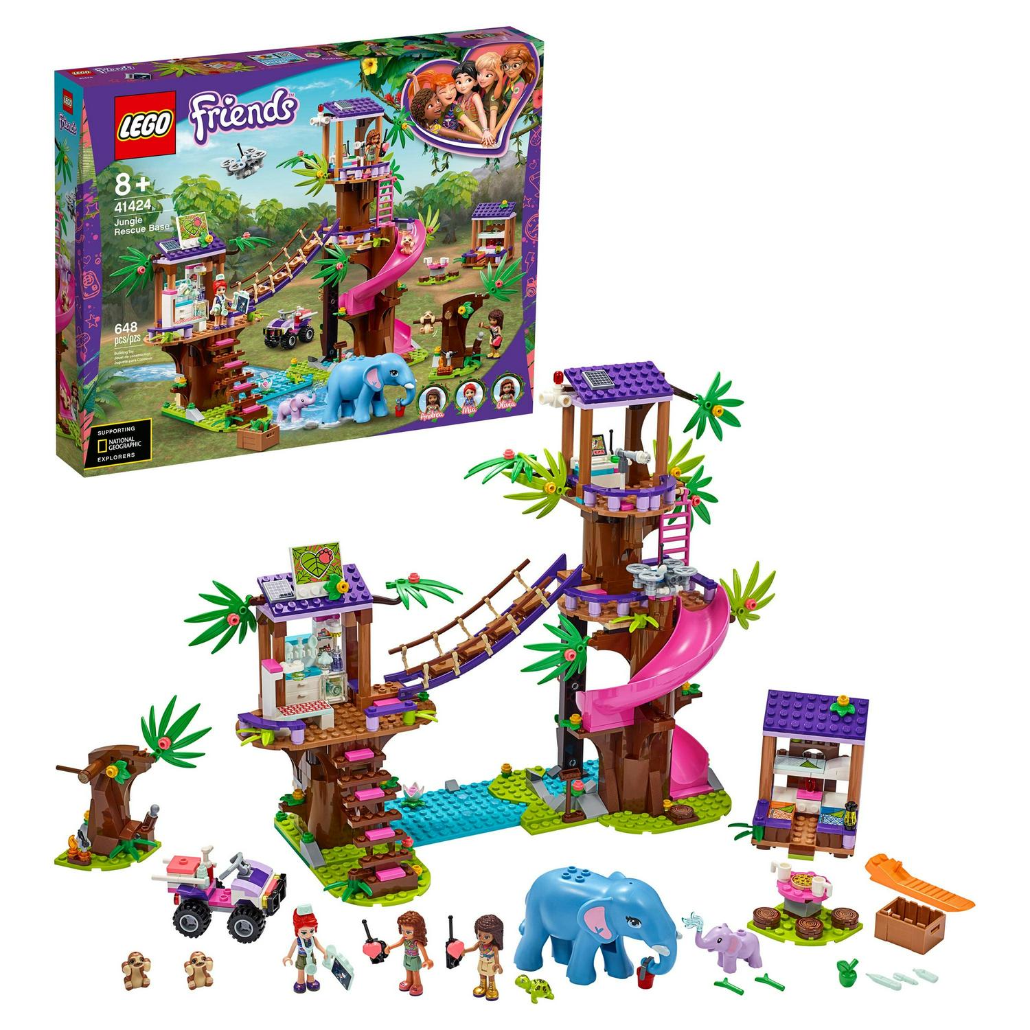 LEGO Friends Jungle Rescue Base 41424; Animal Rescue Playset Inspires Creative Play and Has a Jungle Tree Sanctuary (648 Pieces)