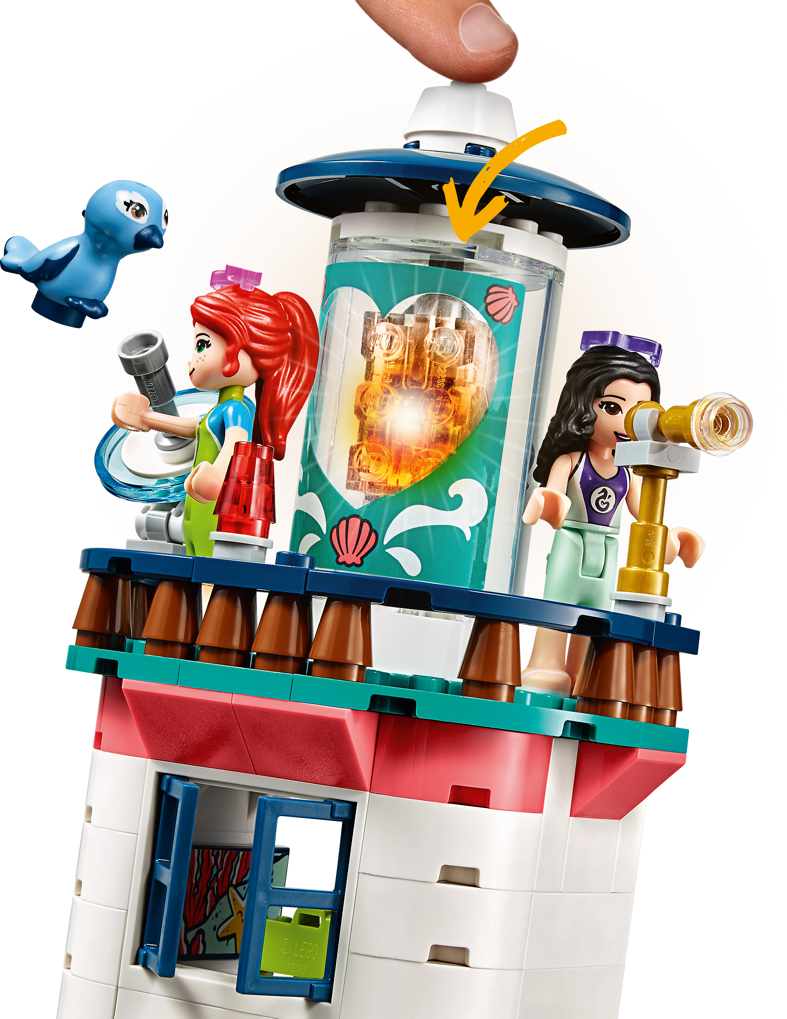 Let your kid get totally immersed in adventure action play with LEGO Friends 41380 Lighthouse Rescue Center playset. This rescue center toy has a multitude of features, including a lab, sea lion play area, rest area, TV room, office and an observation deck with a lamp that can be lit by pressing the lighthouse roof. Rescued sea lions access the lighthouse clinic using a clever hinged pool that swings through 180 degrees to bring the sea lions into the clinic. Also included is a water scooter for rescuing the sea animals and a mini island where the sea lion is trapped in an abandoned shack, which has a fun button function your child can push to set the sea lion free. There is also a treasure map hidden there—the clever textile reveals its secrets when brushed with water. This lighthouse toy provides a raft of scenarios that allow imaginations to run free and nurturing play to come to the fore. Give any LEGO builder an amazing building experience with Instructions PLUS, available in the LEGO Life app for smartphones and tablets. The easy-to-use, intuitive building instructions let them zoom, rotate and visualize their creation using the special ghost mode as they go. Instructions PLUS is also great for younger builders, guiding them through the building process for a greater sense of independence and achievement.