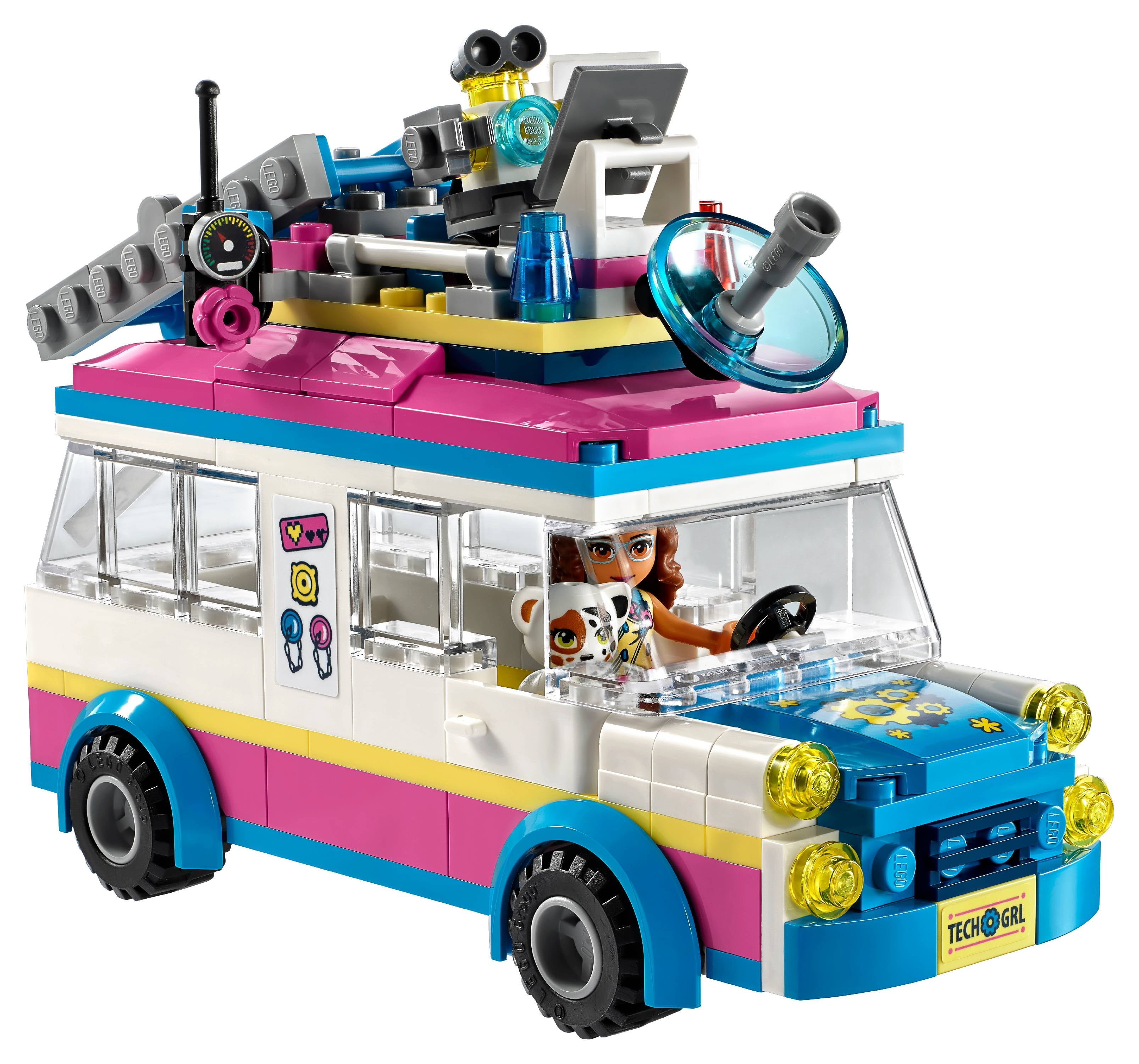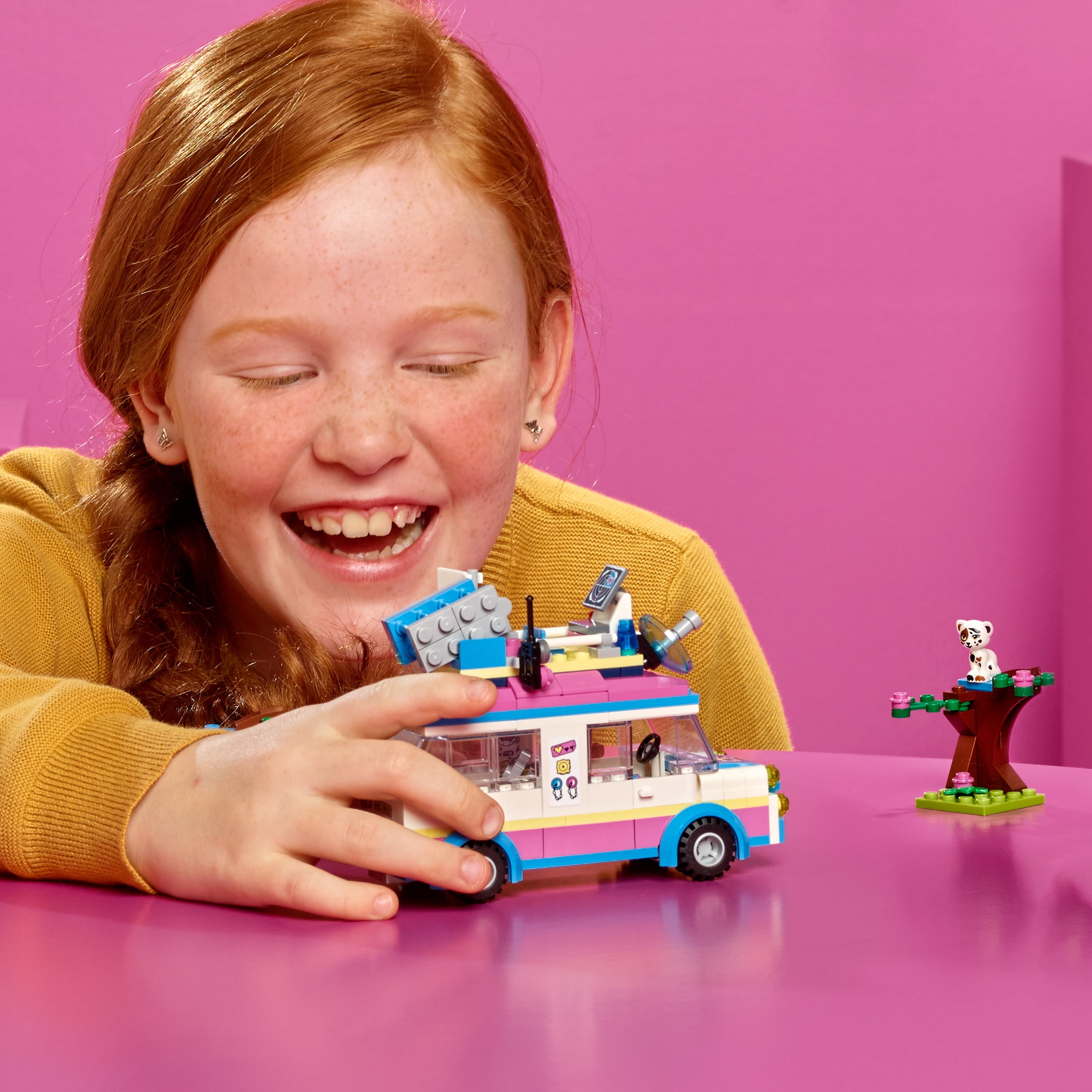 Includes an Olivia mini-doll figure, plus a buildable Zobo figure and a Vega the cat figure Features a truck-style vehicle with rooftop control center, computer, secret compartment and a removable roof with room inside for 5 mini-doll figures, plus a small park scene with a tree Accessory elements include a Heartlake City Park map, ladder and a cookie Jump into the mission vehicle with Olivia and Zobo, and rush to anyone who needs their help around Heartlake City Use the ladder to rescue the little cat from the tree in Heartlake City Park Help Zobo keep on top of any situation from his rooftop control center Lift off the control center to discover the secret compartment under the roof of this popular kids? toy Olivia?s mission vehicle measures over 3? (10cm) high, 5? (13cm) long and 1? (5cm) wide Park scene measures over 1? (3cm) high, 1? (3cm) wide and 1? (4cm) deep Combine with 41331 Stephanie?s Soccer Practice, 41332 Emma?s Art Stand, 41334 Andrea?s Park Performance and 41335 Mia?s Tree House for more fun in Heartlake City Park Remove Zobo?s control center to park Olivia?s mission vehicle in the garage of the 41340 Friendship House