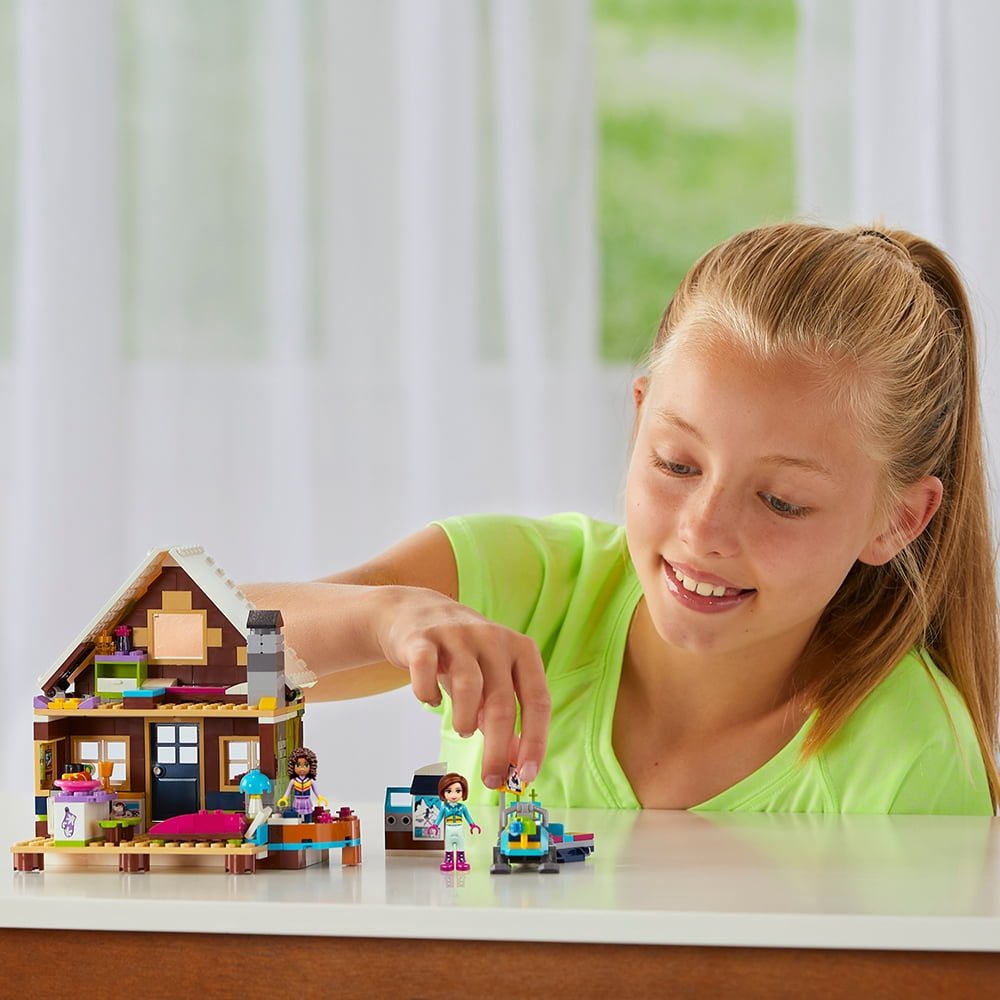 Build your own Snow Resort Chalet, featuring a two-story log cabin, lounge area with fireplace, dining area with table and chairs, upstairs bedroom with three beds and snowmobile! Includes Andrea and Amy mini-dolls in winter outfits, plus a Luna the husky figure LEGO Friends brick building toys are compatible with all other LEGO construction sets for creative building Chalet measures over 5? high, 6? wide and 5? deep. Snowmobile measures over 1? high, 4? long and 1? wide 402 pieces ? For girls and boys between the ages of 7 and 12 years old