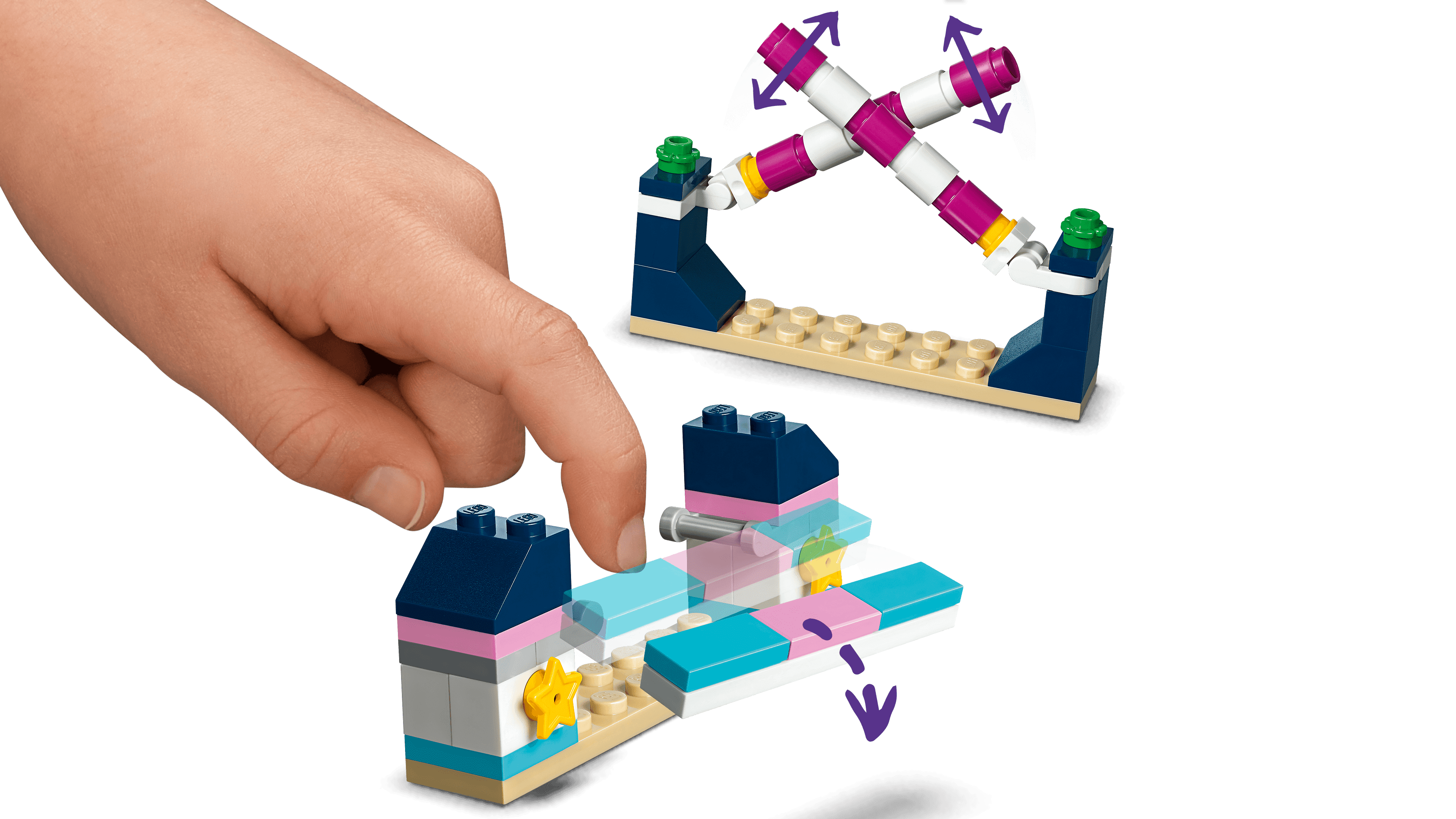 Play at being a showjumping champion with LEGO Friends 41567 Stephanie’s Horse Jumping horse play set. Before the contest lovingly wash and prepare the horses at the toy horse stable. Once the competition starts ride around the course, navigating the horse jump toys and taking care not to knock off the rails. Spectators can take in the action and enjoy a drink from the viewing balcony. The action is captured on a TV camera then beamed up to a screen on the balcony. Competitors then take their place on the podium for the trophy-giving. Includes 2 mini-dolls: Stephanie and Zack, plus 2 horse figures.