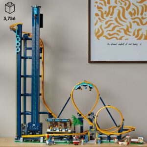 Take your seat. It s time to relive the thrills of your favorite rollercoaster rides. But wait there s no rush. This LEGO Loop Coaster (10303) is a model building kit for adults. So take your time crafting all the details of this functional LEGO roller coaster model. The gravity-driven LEGO roller coaster comes with 1 train and a boarding station with opening barriers and a control panel. Lower the bars to secure the rider minifigures into the roller coaster carriages. Then release the brake to send the train to the foot of the elevator lift. Activate the elevator lift and enjoy the ride as the carriages whizz through the loops and turns of the LEGO roller coaster track. Upgrade the funfair with LEGO Powered Up kit (available separately) for a motorized elevator lift. Accessories include a park bench with a map, balloon cart, pretzel cart, hot-dog stand and height marker. Spend quality time with advanced LEGO sets for adults, created especially for those who love immersive builds and impressive display models. Why not surprise a special person in your life with this LEGO roller coaster model – a great birthday gift or any time treat for fun-loving adults. Model rollercoaster measures over 36 in. (92 cm) high, 33.5 in. (85 cm) wide and 13.5 in. (34 cm) deep. Contains 3,756 Pieces.