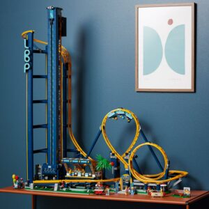 – Build a fantastic LEGO set for adults with a double loop roller coaster model, passenger train, boarding station, control panel and an elevator