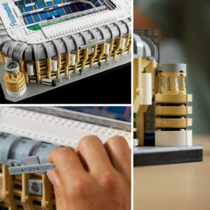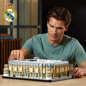 – Capture the essence of Real Madrid with this fascinating model of the Santiago Bernabéu soccer stadium LEGO building set for adults