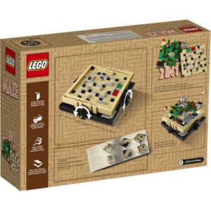 – The 2-in-1 Maze features a customizable maze system, wheel-operated tilt mechanism (incorporating LEGO Technic axles and lift arms), built-in removable ball container with four orange balls and a travel lock
