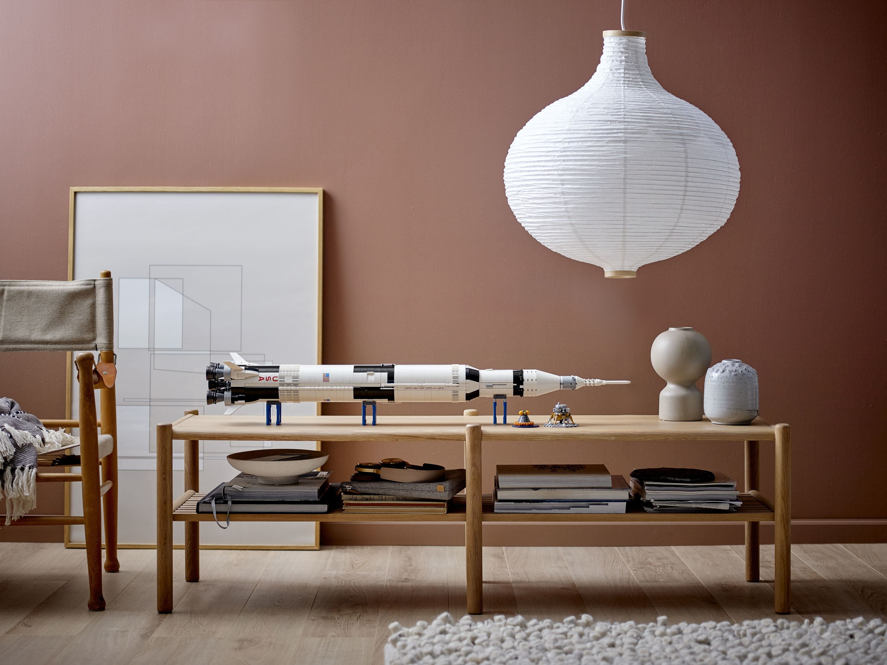 The meter-high lego nasa apollo saturn v is the perfect model rocket to both display and role play with. packed with authentic details, it features 3 removable rocket stages (first, s-ii second, and s-ivb third) a launch escape system, a command and service module along with the lunar lander and lunar orbiter to recreate a rocket launch and splashdown landing. there are also 2 astronaut minifigures and 1 micro figure for role-play recreations of the moon landings. this building toy includes an informational booklet about the manned apollo missions and the fan designers who created this educational lego ideas set. builders have the option to horizontally display the saturn v model with the 3 stands.