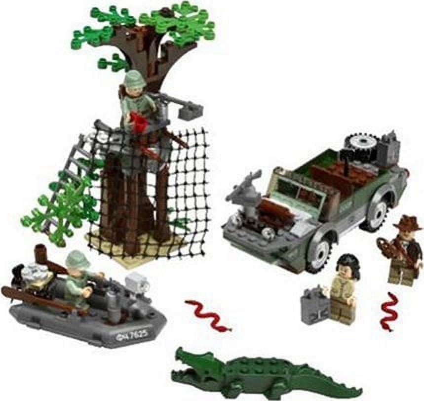 From the ManufacturerEscape on two terrains! In a terrific vehicle chase, Indiana Jones and his team attempt a daring river escape in an amphibious vehicle built to travel on both water and land! But the soldiers have a boat of their own, and they re in hot pursuit. Look out for the net trap, the snapping crocodile and snakes!
