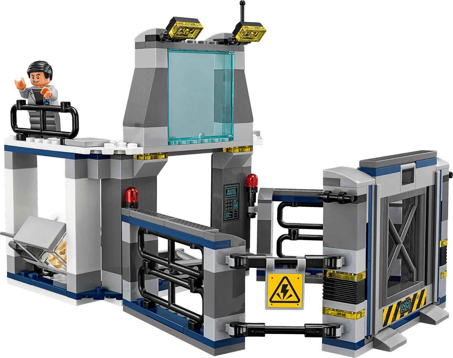 – Features Dr Wu s 2-level laboratory with observation deck, ladder, 2 translucent-yellow floodlights, workbench, 2 windows, plus an adjoining dinosaur enclosure with a lifting gate
