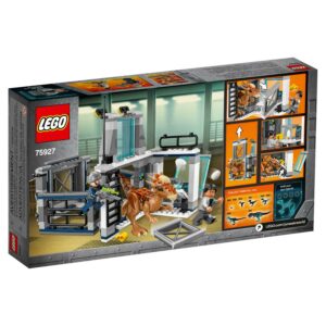 Get set for a LEGO Jurassic World 75927 Stygimoloch Breakout with this action-packed play set, featuring a laboratory with observation deck and a tilting workbench with breaking window function, connected to a dinosaur enclosure pen with 2 floodlights and a lifting gate. This fun Jurassic World toy for boys and girls includes 2 minifigures and a Stygimoloch dinosaur figure.