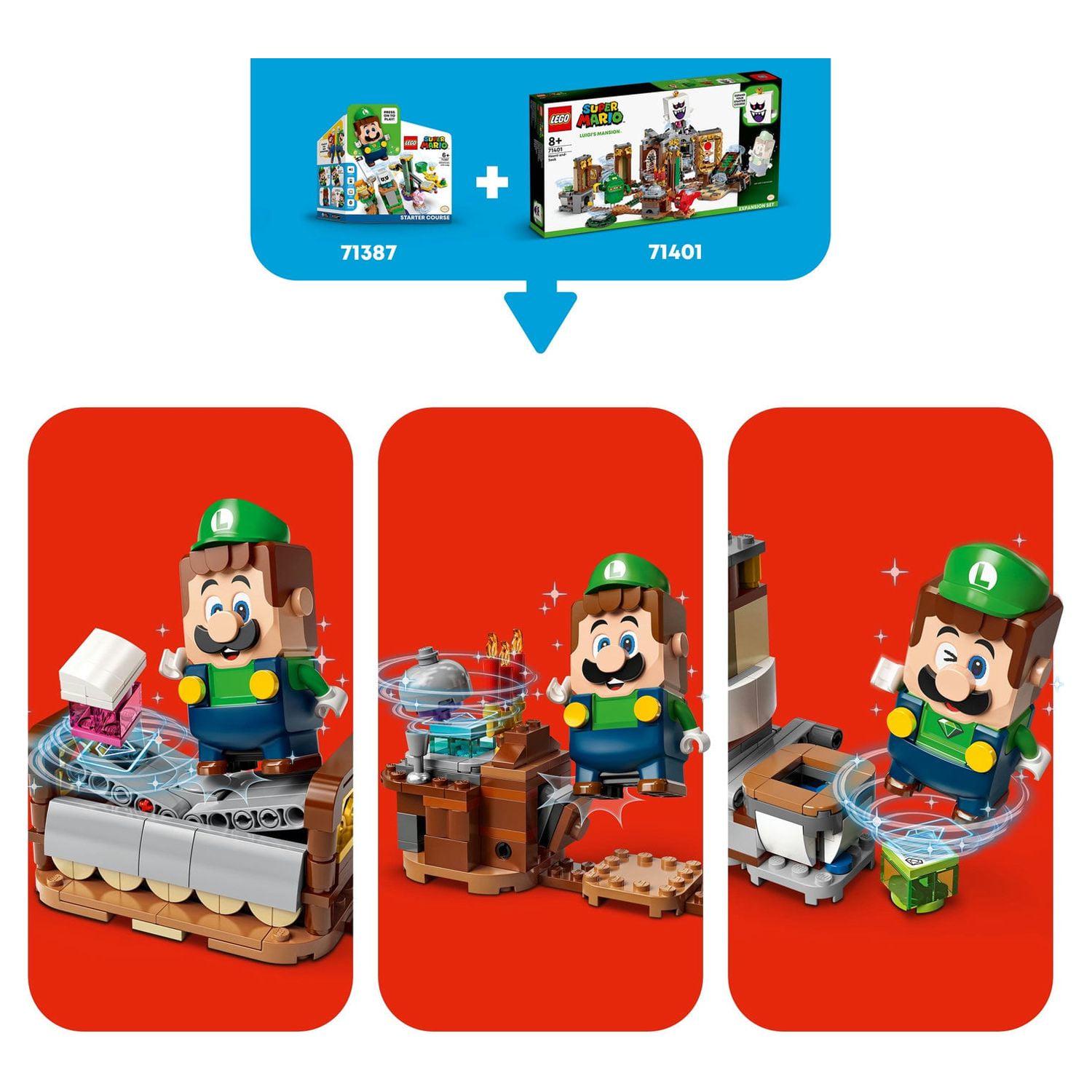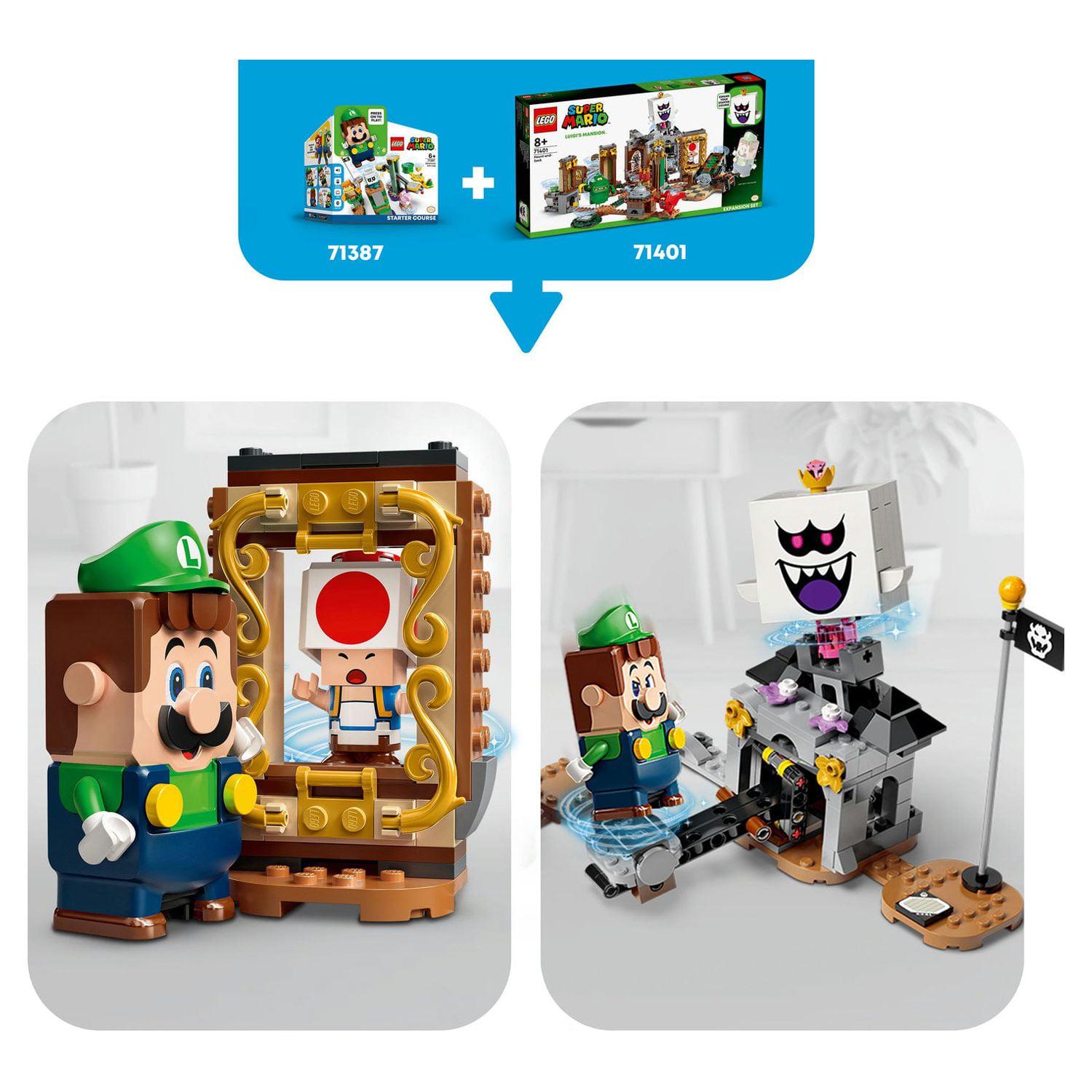 Create a gem-hunting, ghost-battling LEGO Super Mario level with Luigi s Mansion Haunt-and-Seek Expansion Set (71401) for ages 8 and up. It features a start plate and a rotating hallway to access each room. There are lots of fun challenges for LEGO Luigi or LEGO Mario (figures are not included): rescue Toad from a painting, uncover hidden gems, battle a haunted pool table, defeat a Garbage Can Ghost and a Grabbing Ghost, and topple King Boo from the tower. (Note: The71387 or 71360 Starter Course is required for interactive play.) This collectible toy playset makes a super gift for trendsetting kids. Check out the LEGO Super Mario app for building instructions, creative ideas and more. Collectible Luigi s Mansion sets offer spooky adventures with LEGO Luigi as the hero. The puzzle-solving play is even more thrilling when family members play as a team and level up with the Poltergust (sold separately in set 71397) to defeat ghosts.