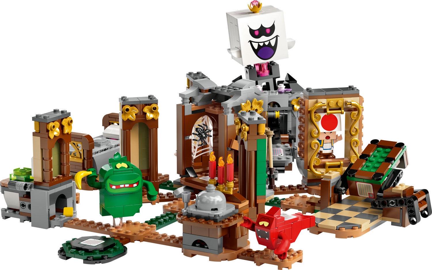 – 4 Super Mario Luigi s Mansion characters LEGO figures of Toad (with a scared face), a Garbage Can Ghost, a Grabbing Ghost and King Boo, plus a start plate that triggers different background music