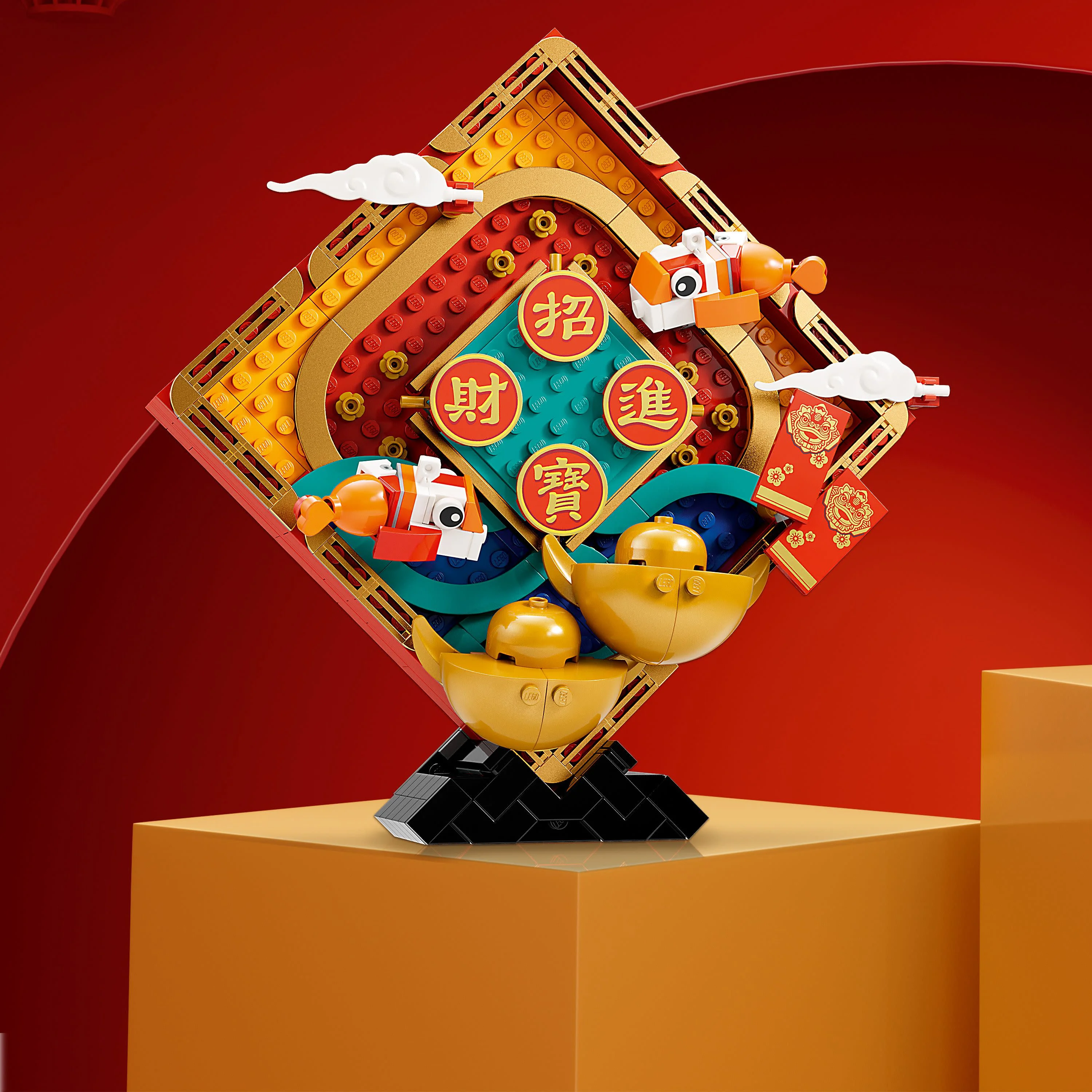 Create 2 spectacular Lunar New Year Display models packed with traditional festive symbols, with this colorful LEGO set (80110) for ages 8 and up. These decorative, buildable models can be displayed together or individually around a home or workplace. One has buildable golden ingots in the traditional Yuan Bao design, koi fish for good luck, red pockets symbolizing good wishes and fortune and the “Zhao Cai Jin Bao” greeting that welcomes fortune and treasures into the home. The second model hasa large buildable moutan peony flower, small moutan peony flowers, plus the “Hua Kai Fu Gui” greeting, meaning blooming prosperity and happiness. A fun activity to enhance any Lunar New Year celebration, the set includes separate building instructions for each model, so family members and friends can easily share the fun, creative experience. Collectible Traditional Festival LEGO building toys make super holiday gifts for creative kids and anyone interested in Asian culture.