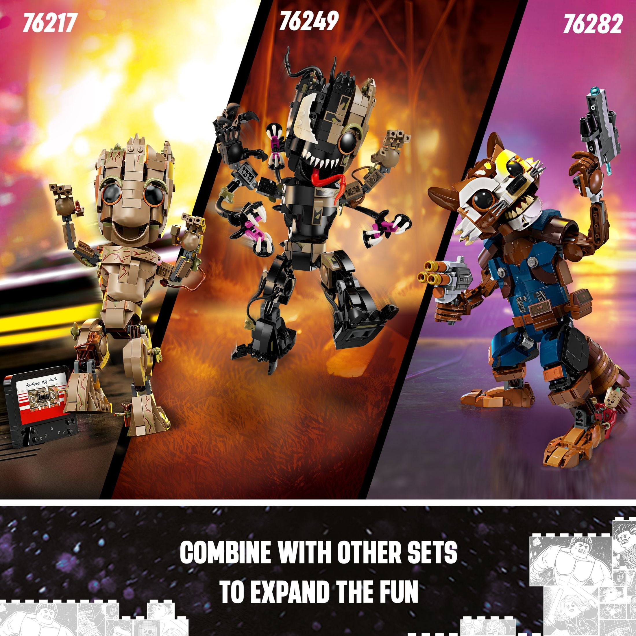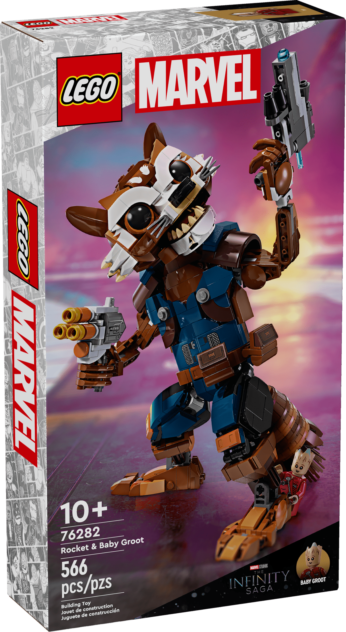 Rocket action figure for kids – Take Marvel movie action to the next level with the LEGO Marvel Rocket & Baby Groot buildable toy for boys and girls ages 10 and up 2 Marvel characters – This buildable Marvel action figure features 2 Guardians of the Galaxy: Rocket, holding a spring shooter and a blaster, and a Baby Groot minifigure that attaches to Rocket’s shoulder Posable action figure – Kids dynamically adjust the jointed build and play Rocket model as they role play missions with the Guardians of the Galaxy and imaginative adventures of their own Many ways to play and display – This buildable LEGO Marvel toy is fun to construct and delivers endless play and display possibilities LEGO gift for movie lovers – Fans of action movies and Marvel Studios’ Guardians of the Galaxy can enjoy endless playtime fun with this authentically detailed, fully jointed Rocket action figure 3D building instructions – Kids can download the LEGO Builder app for an immersive building experience, with digital tools to zoom in and rotate models in 3D, save sets and track progress LEGO Marvel collection – The extensive choice of LEGO Marvel building toys and models is designed to inspire all young Super Heroes with endless hands-on, creative adventures