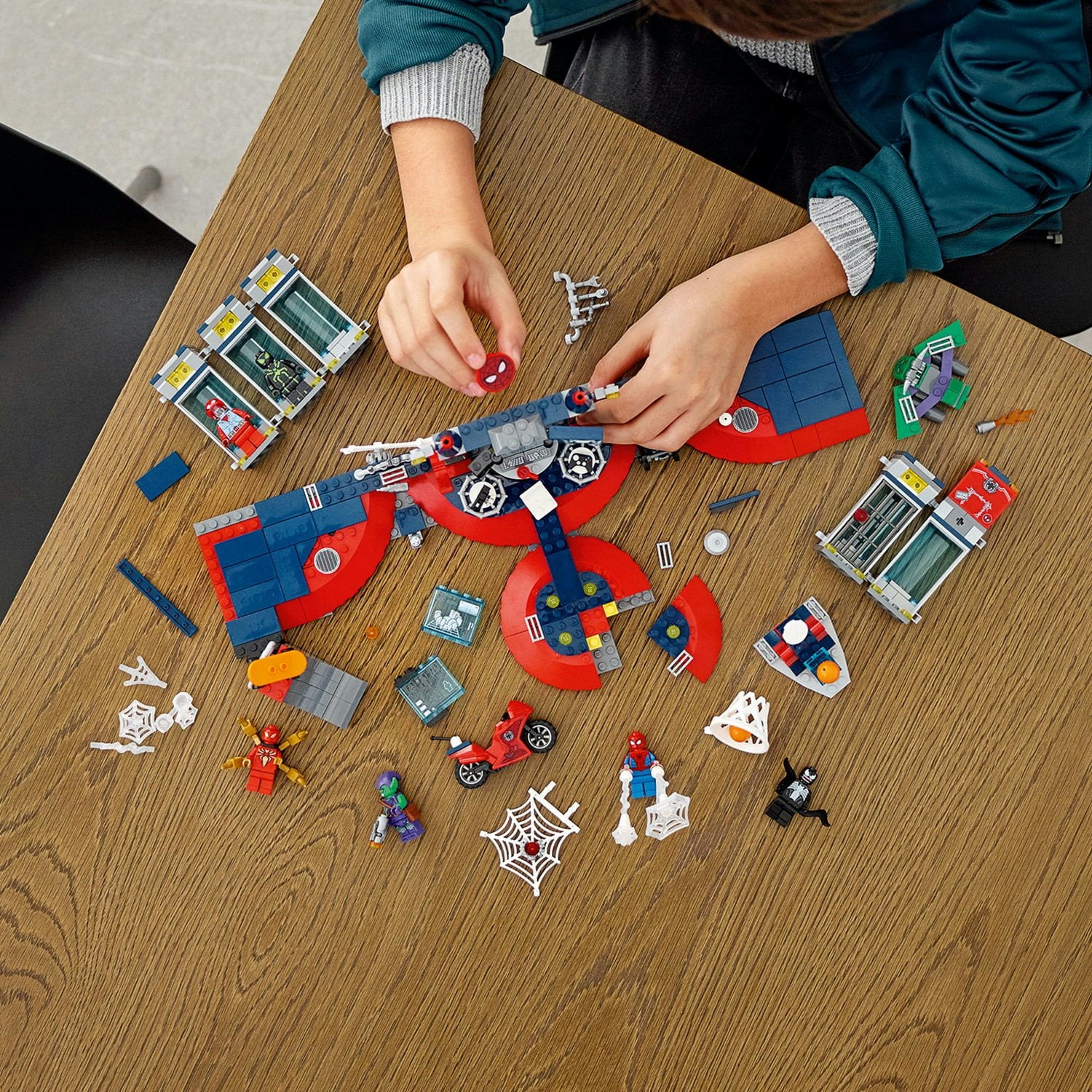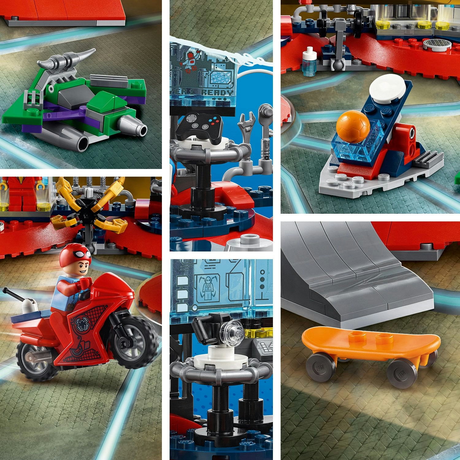 There’s everything a teenage superhero needs in LEGO Marvel Spider-Man Attack on the Spider Lair (76175) – the first LEGO version of the web-slinger’s high-tech HQ Includes Spider-Man, Green Goblin and Venom minifigures, a PC, PlayStation, basketball game, skateboard with ramp, drinks area, camera, training kit, motorbike, Iron Spider Suit, weapons and a jail Young superheroes join Spider-Man playing games in his HQ. When 2 super villains force their way in, it’s time for battle. Kids must use the amazing equipment and their own skills to save the day An ideal birthday, holiday or just-because gift for Marvel movie fans aged 8 and up who want to stand out from the crowd with the premier LEGO set Spider-Man’s HQ Spider-Man’s spectacular headquarters measure over 5 in. (14 cm) high, 16 in. (41 cm) long and 6 in. (17 cm) wide and combine easily with other LEGO Marvel Spider-Man sets