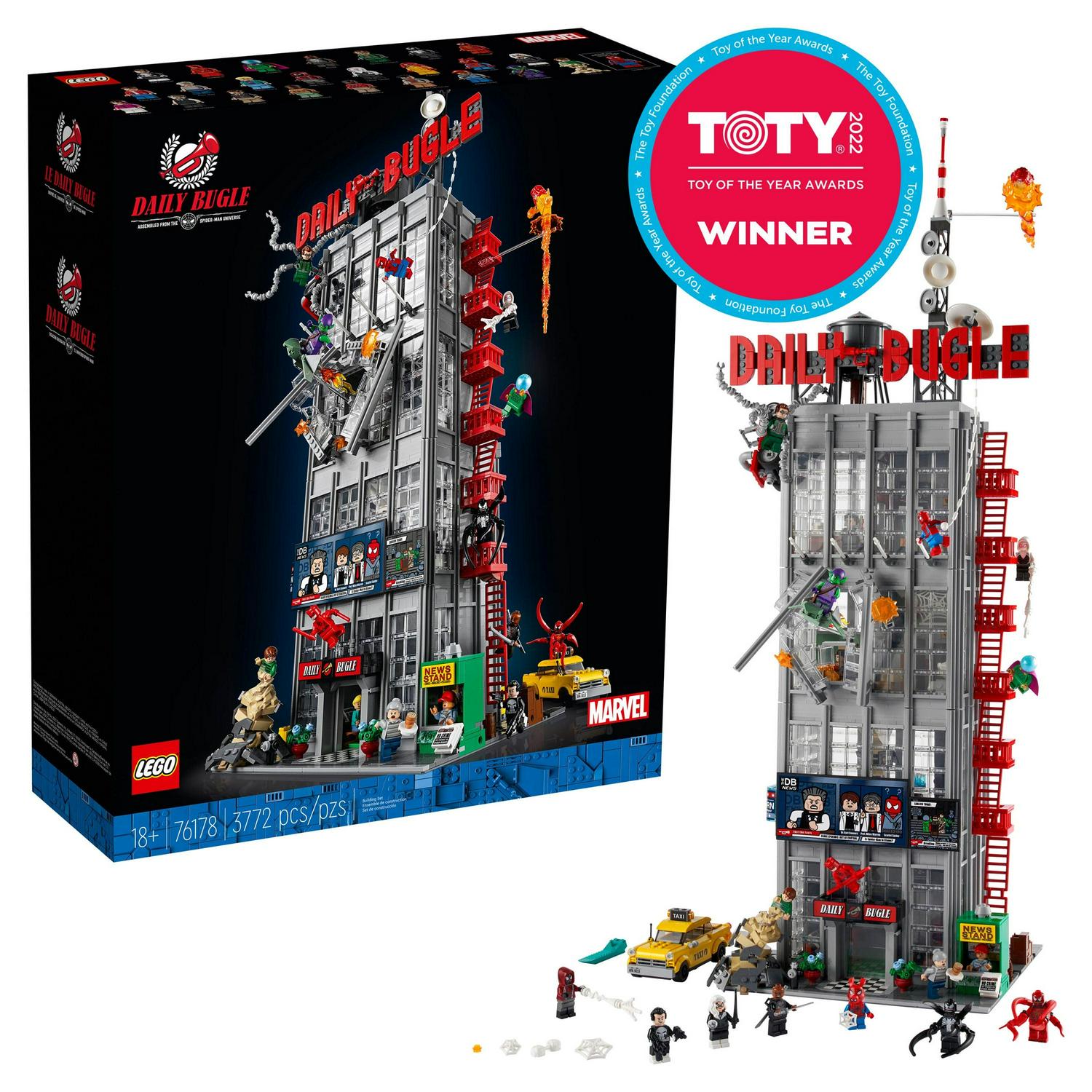 – Marvel LEGO Set – 3,772-piece, 32 in./82 cm high, 4-floor Daily Bugle office recreation with 25 minifigures for adult collectors.