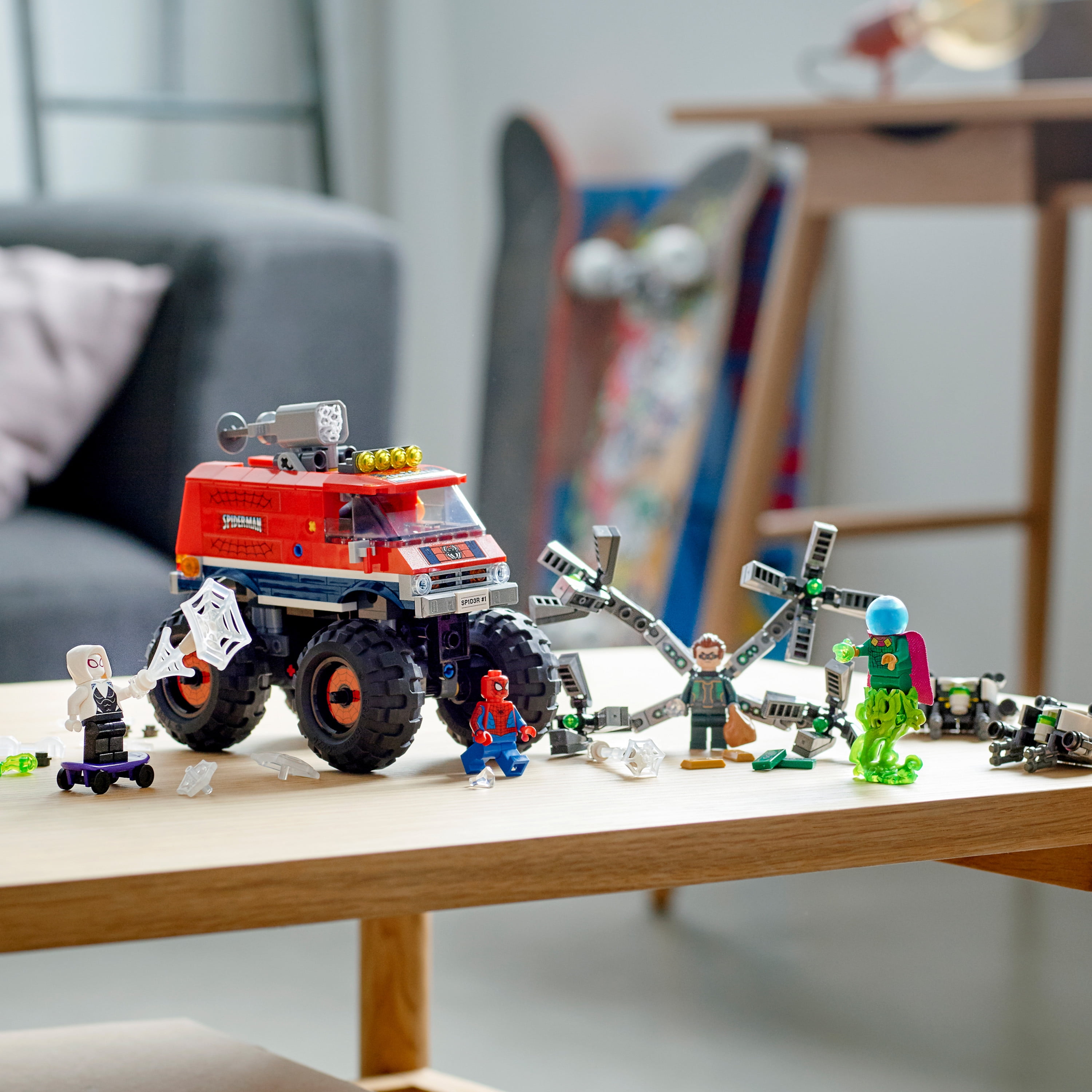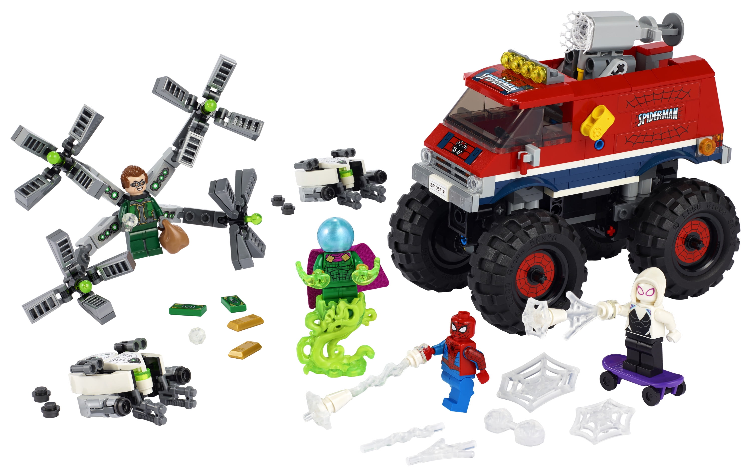 LEGO Marvel Spider-Man: Spider-Man’s Monster Truck vs. Mysterio (76174) brings together 4 favorite characters from the Spider-Man movies and an almighty monster truck for spectacular superhero action and adventures Kids can build, play and create scenes with their supercool superhero action set to display in their room This perfect birthday, holiday or just-because gift is bursting with imaginative play possibilities for any young superhero aged 8 and up Spider-Man’s monster truck measures over 4 in. (12 cm) high, 5 in. (15 cm) long and 3 in. (9 cm) wide and is built to endure endless dangerous and daring adventures