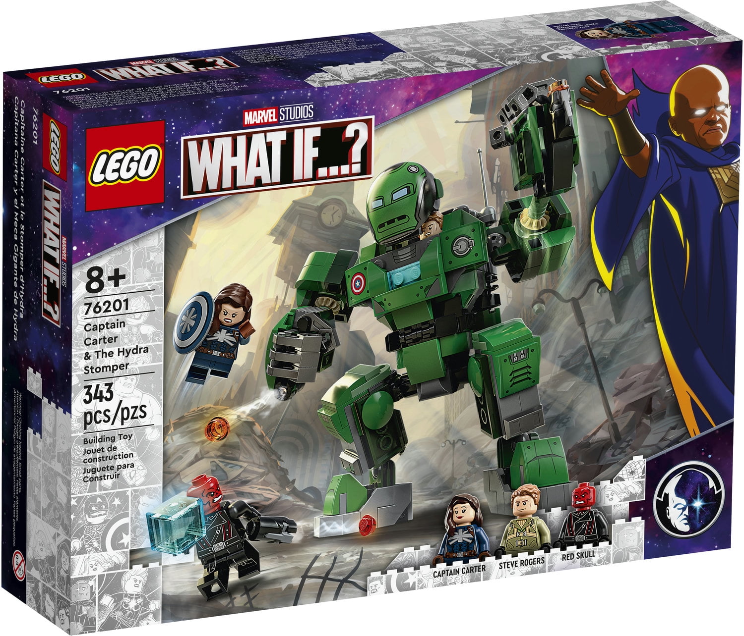 LEGO® Marvel Captain Carter & The Hydra Stomper (76201) takes kids’ imaginative play to a whole new dimension, bringing to life Super Hero adventures from Marvel Studios’ What If…? Disney+ series Includes Captain Carter, Steve Rogers and Red Skull minifigures, plus a buildable mech with an opening cockpit and 2 stud shooters Kids place the Steve Rogers minifigure into the highly posable Hydra Stomper mech ready for battle with Marvel villain Red Skull, who has stolen the powerful Tesseract from Captain Carter LEGO® Marvel Captain Carter & The Hydra Stomper is a great gift for fans of Marvel Studios’ What If…? on Disney+ and Marvel-movie action aged 8 and up The posable mech stands over 5 in. (15 cm) tall and features posable limbs. Perfect for dynamic play and display There are more LEGO® Marvel mechs for kids to collect and combine to bring Super Hero movie action to life and inspire never-ending imaginative stories of their own LEGO® components meet stringent industry standards to ensure they are reliable, compatible and connect and pull apart consistently every time – it’s been that way since 1958 LEGO® components are dropped, heated, crushed, twisted and analyzed to make sure they meet rigorous global safety standards