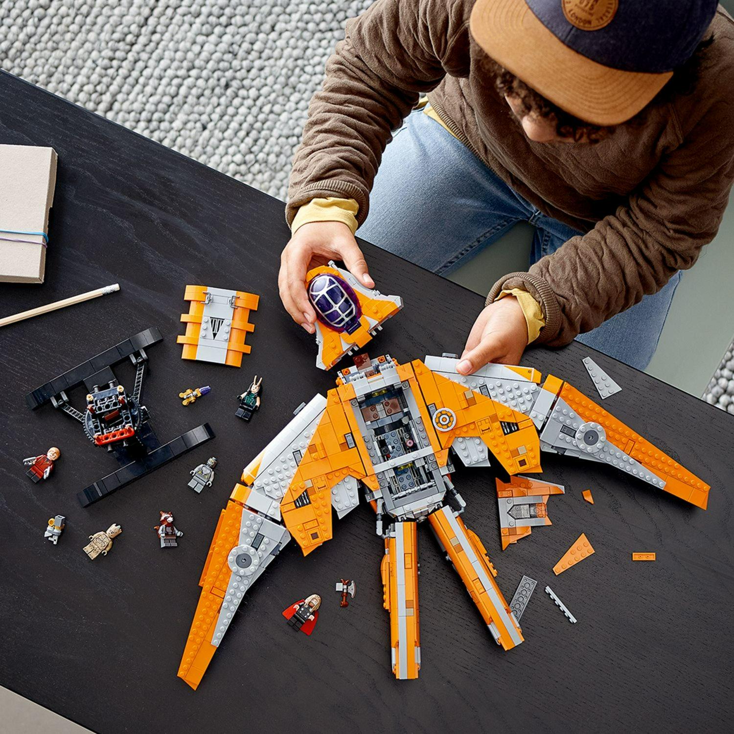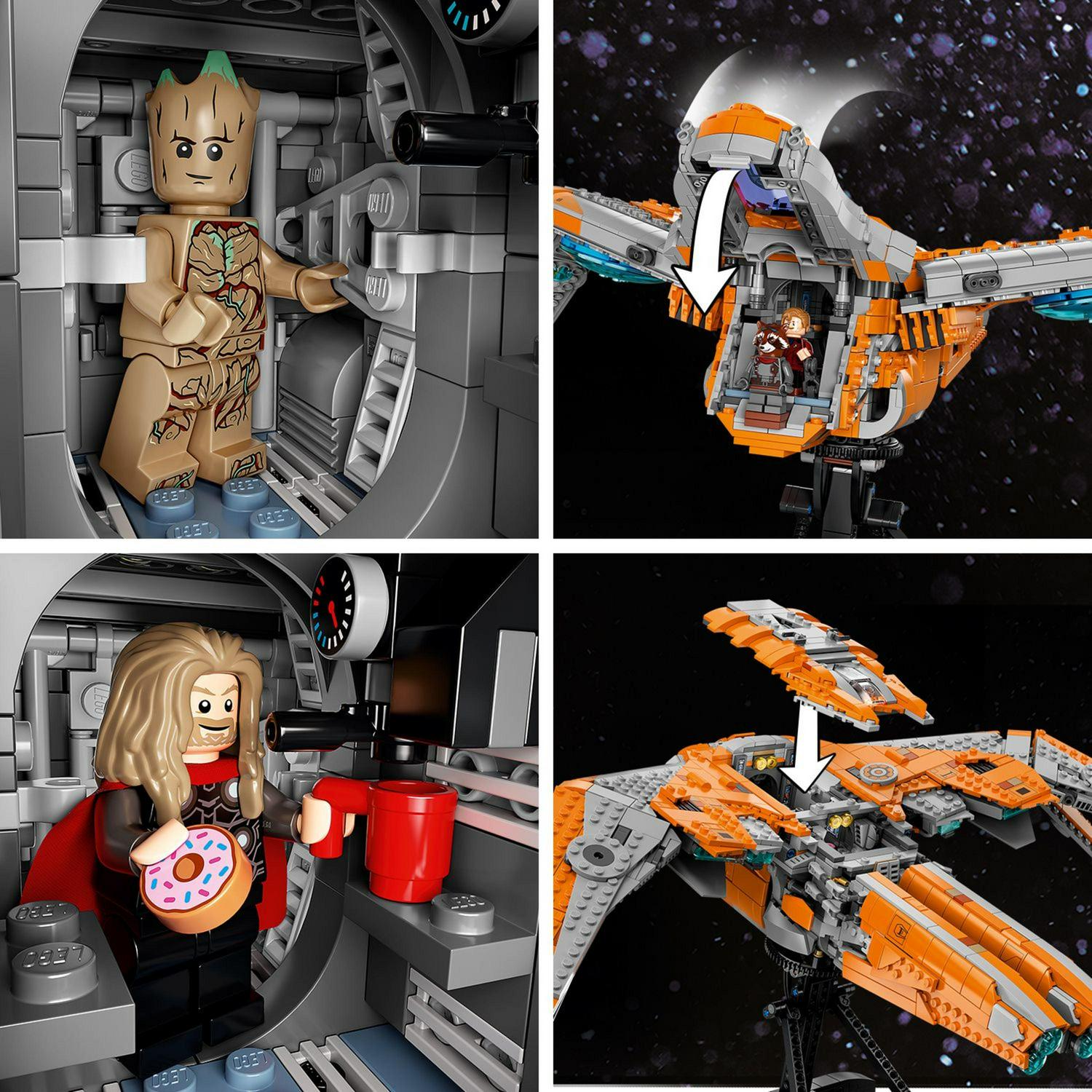 – Iconic LEGO Spaceship – Features the iconic Guardians of the Galaxy spaceship with an opening cockpit and room for all the Marvel minifigures from the set.