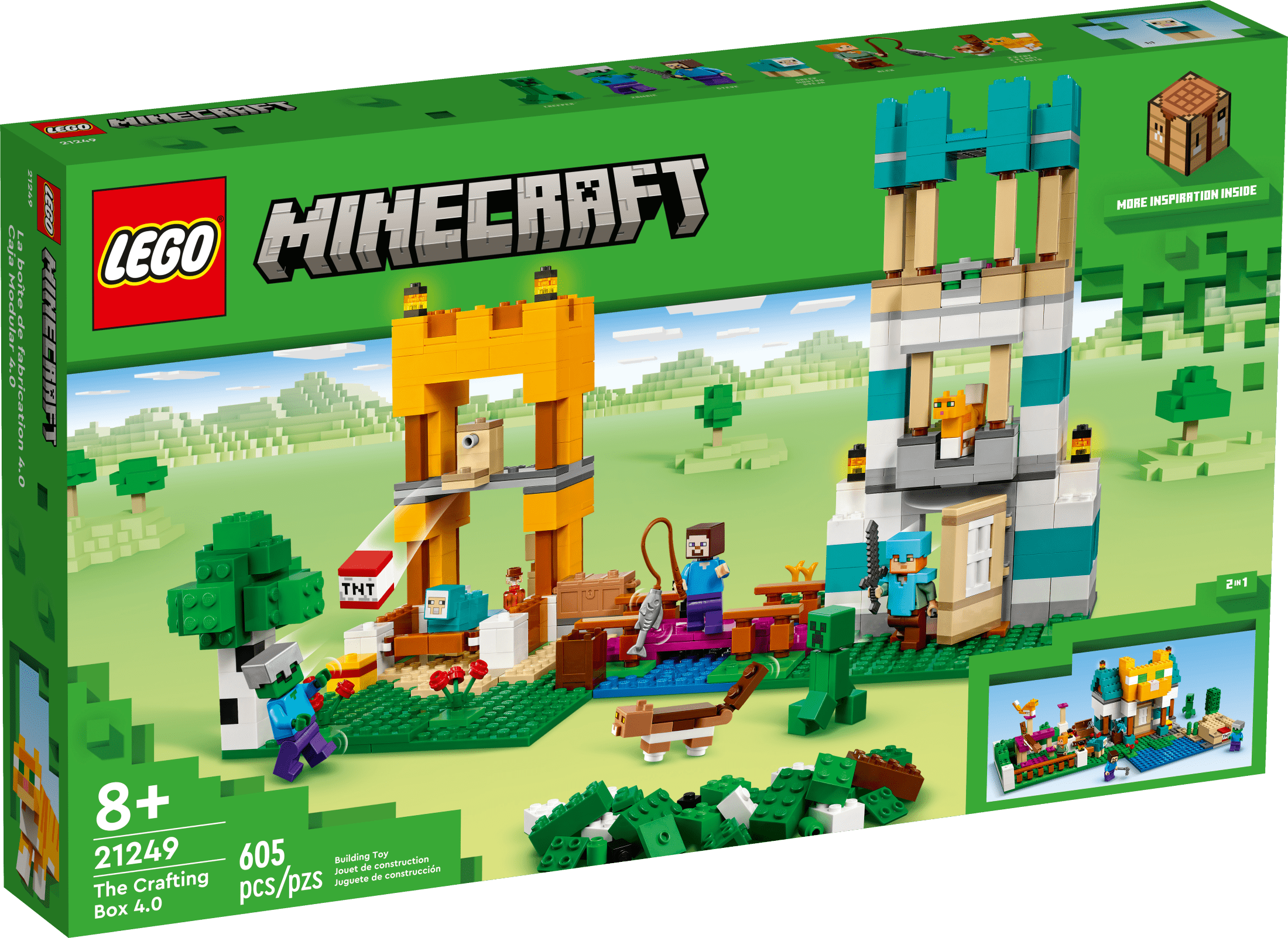 2 Minecraft worlds in 1 set – LEGO Minecraft The Crafting Box 4.0 (21249) building toy inspires players with 2 large-scale sets and endless free-building fun in 1 epic collection of Minecraft bricks and pieces Packed with Minecraft action – This Minecraft toy set includes lots of familiar figures and mobs from the game, including Steve, Alex, a zombie, Creeper, cats and sheep Endless play possibilities – Minecraft players can bring to life fortress battle action, a cat-themed community, plus various suggested builds and infinite imaginative adventures of their own The creative fun never stops – With 2 large model options and endless free-building fun, this stimulating building toy for 8 year old kids makes a lasting birthday, holiday or any-day gift Dimensions – The fortress measures over 8 in. (21 cm) high, 14 in. (36 cm) wide and 8.5 in. (21 cm) deep. The cat house measures over 5 in. (13 cm) high, 14.5 in. (37 cm) wide and 7.5 in. (20 cm) deep Intuitive building instructions – Kids can download the LEGO Builder app for an immersive building experience, with digital tools to zoom in and rotate models in 3D, save sets and track progress Minecraft made real – LEGO Minecraft sets give kids a different way to enjoy the popular game, with mobs, scenes and features brought to life with the hands-on creativity of LEGO bricks Quality guaranteed – LEGO components meet stringent industry quality standards to ensure they are consistent, compatible and easy to build with Safety assured – LEGO bricks and pieces are dropped, heated, crushed, twisted and analyzed to make sure they satisfy rigorous global safety standards