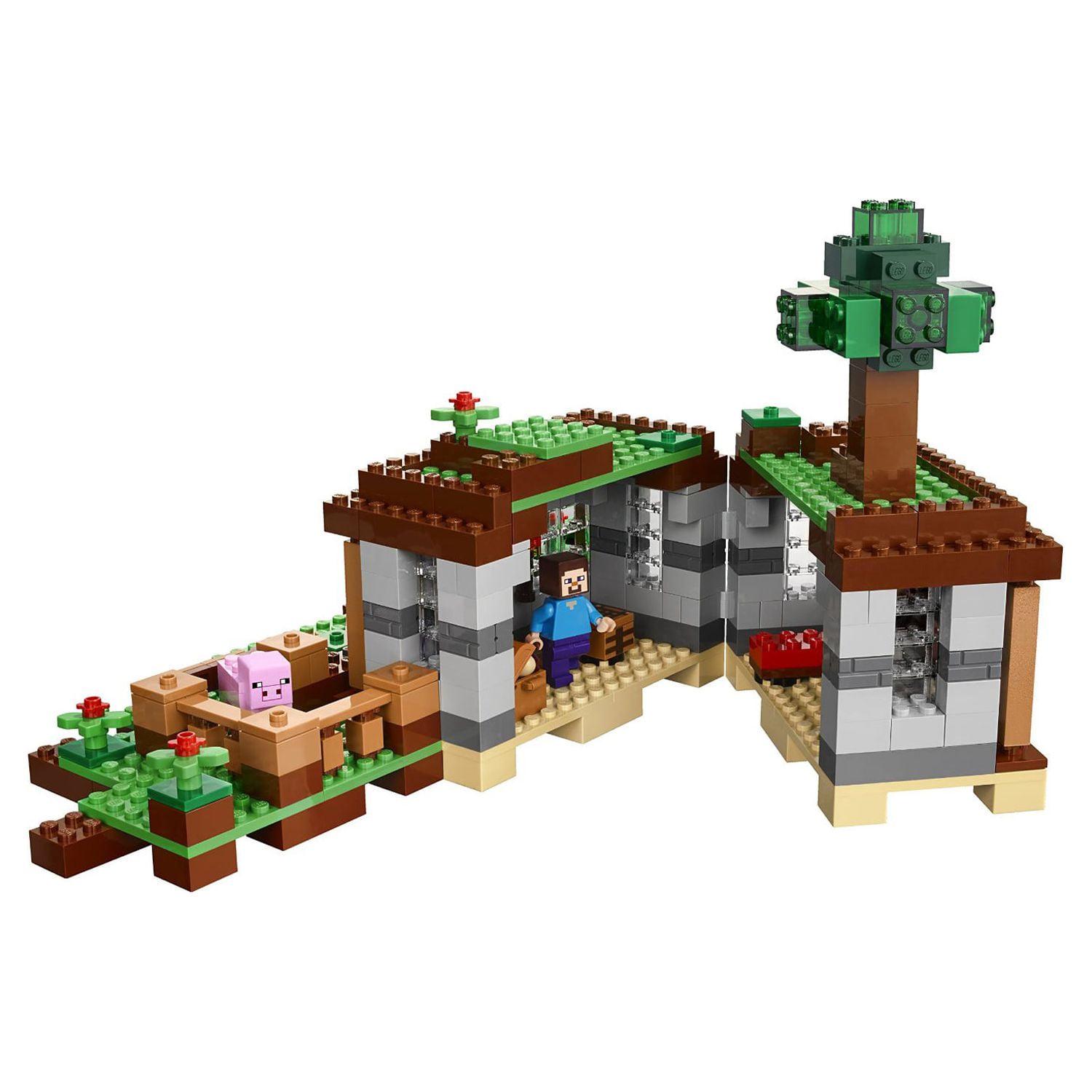 Use the daylight hours wisely to survive The First Night! Build a shelter and enclosure to protect your livestock, craft a bed, oven and a chest, but make sure you’re finished before nightfall if you wish to avoid the hissing Creeper! Rebuild the set for more LEGO Minecraft creations or combine with 21114 The Farm and other sets in the series for an even bigger Minecraft adventure!