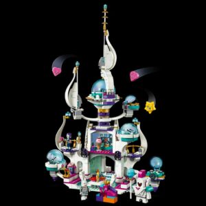 Cosmic action awaits children as they build the 70838 Queen Watevra s So-Not-Evil Space Palace and role-play with their favorite THE LEGO MOVIE 2 characters. This colorful LEGO palace toy features a rotating top section with an opening, detachable toy rocket for Queen Watevra Wa’Nabi, detachable pods for other characters, security room, detailed dining room and a DJ booth for creative and group play. A unique toy playset for kids who will love reimagining their favorite scenes from THE LEGO MOVIE 2 and making up their own stories with a minifigure, mini-doll figure and 6 brick-built figures.