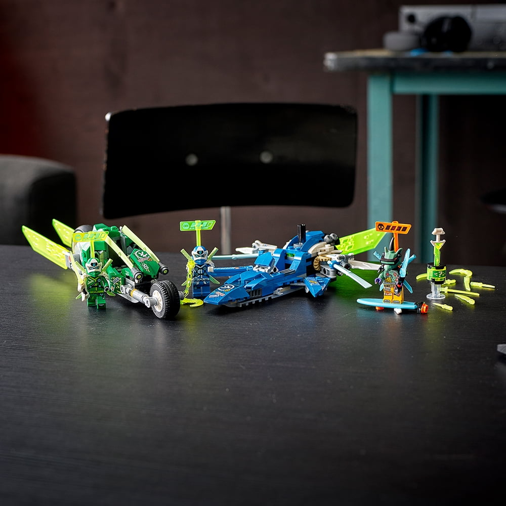 Stunning LEGO NINJAGO toy playset featuring Jay and Lloyd’s Velocity Racers. This building kit for kids is perfect for those who love adventure toys and role-playing exciting battles with ninja action figures This toy playset includes Digi Jay and its toy Speeder plane, Digi Lloyd and its toy ninja bike, Hausner and its hoverboard, and Key-Tana. kids will love to recreate the Speedway Five-Billion race from Prime Empire This hot toy playset includes 3 minifigures who battle inside the Prime Empire video game. All the minifigures have cool prime controller weapons and health boards displaying their remaining lives These 322-piece construction toys provide a fun building experience for boys and girls aged 7+ and make a great birthday gift. The toy playset will inspire imaginative play or kids can indulge in role-play with friends These ninja vehicle are simply powered by kids imagination, so the racing and battles never have to stop This is the perfect ninja playset to give to a young LEGO builder. The bricks and buildable figures come with easy-to-follow instructions, or kids can use the amazing digital and interactive Instructions PLUS guide on the free LEGO Life app LEGO NINJAGO collectible construction toys let kids enter a thrilling world of fantasy action and role-play with their favorite ninjas against the forces of evil. The perfect way to fully engage young minds LEGO bricks have met the highest industry standards since 1958, ensuring they are always consistent, compatible and pull apart with ease every time, both here on Earth and the NINJAGO realm!