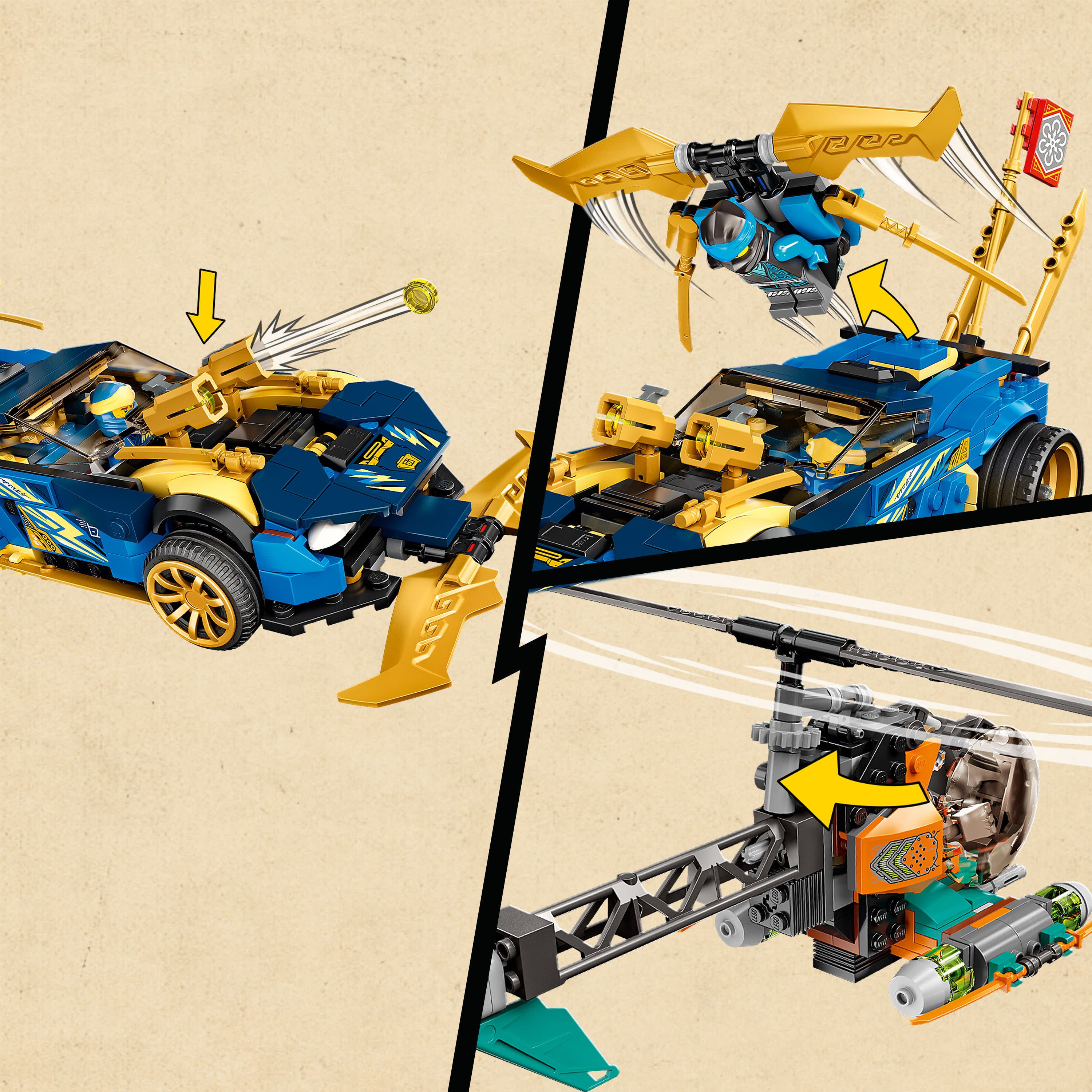 LEGO NINJAGO Jay and Nya’s Race Car EVO Set 71776 with Toy Helicopter and Boa Snake Figure for Kids Ages 7+, Collectible Mission Banner Sets