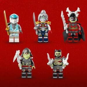 – Includes 5 LEGO NINJAGO minifigures: Zane and Pixal with ninja swords to fight against Bone Knight, Bone Warrior and Bone King, all with weapons