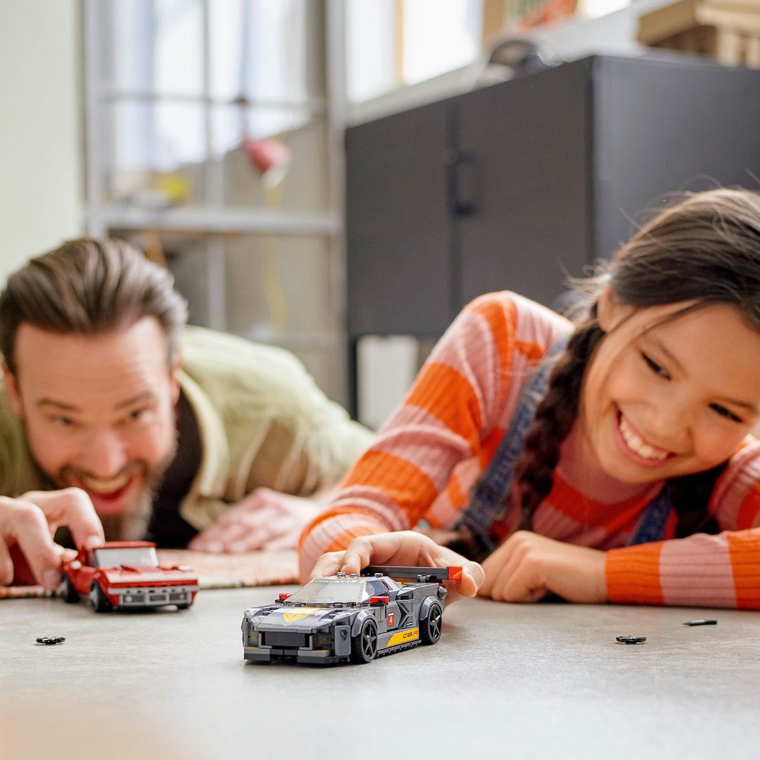 This LEGO Speed Champions Chevrolet Corvette C8.R Race Car and 1969 Chevrolet Corvette (76903) playset is perfect for kids and those with a passion for high-performance cars and racetrack drama. What’s in the box? All you need to build a cool replica of the 2020 Chevrolet Corvette C8.R Race Car and 1969 Chevrolet Corvette, plus 2 driver minifigures with race suits, helmets and a wrench. Kids and car enthusiasts can explore the makeup of 2 real-life Corvettes as they build, before showing them off or staging epic Speed Champions races. This 512-piece LEGO Speed Champions playset makes a great holiday, birthday or any-other-day gift for boys and girls aged 8 and up and for fans of high-performance automobiles. Both collectible toy racing cars are the ideal size to play with at home or on the go. The Corvette C8.R measures over 1.5 in. (4cm) high, 6.5 in. (16cm) long and 2.5 in. (7cm) wide. No batteries required for this playset – it’s powered by kids’ imaginations, so there’s no need for a pit stop!