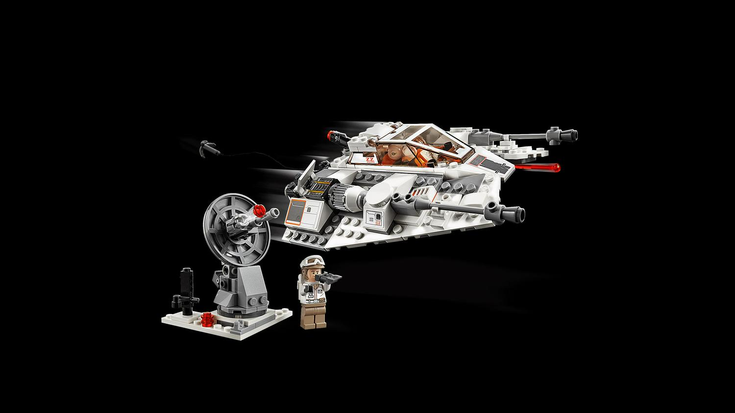 – Features a Snowspeeder vehicle building toy with opening 2-minifigure cockpit, 2 spring-loaded shooters, a stud shooter and harpoon with string at the rear, plus an elevating and rotating gun tower with stud shooter