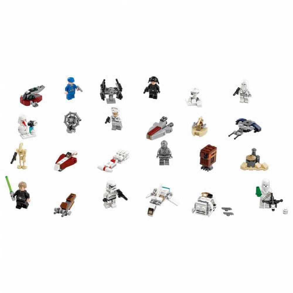 Open a door every day to reveal 24 different LEGO Star Wars themed giftsVehicles include Slave I, a TIE Interceptor, AAT, T-16 Skyhopper, Sleigh, Republic Cruiser, Droid Gunship, Jedi Interceptor, Skiff and an Imperial Landing CraftFeatures 8 mini figures and a Battle Droid, including an exclusive holiday-themed mini figureWeapons include Luke Skywalker’s Light saber, 2 blaster pistols, 3 blasters and a snow casterCollect all the gifts and play out your own Hoth, Tatooine, Naboo and space-based adventures