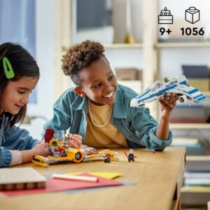 Get ready for a thrilling galactic chase with this LEGO Star Wars New Republic E-Wing vs. Shin Hati s Starfighter (75364) Star Wars playset based on the Ahsoka TV series for ages 9 and up. It features 2 authentically detailed brick-built models of starships from Star Wars: Ahsoka, 5 Star Wars figures including popular characters and a New Republic Astromech Droid for creative play. Each starship featured in this show inspired building toy for Ahsoka fans has an opening minifigure cockpit, 2 stud shooters and space to store weapons. The E-wing starfighter additionally features a space behind the cockpit for Captain Porter s droid, plus retractable landing gear. Download the LEGO Builder app, which has tools for builders to zoom in and rotate a 3D digital version of the real-life construction model as they build, save sets and track their progress. The LEGO Group has been recreating iconic starships, vehicles, locations and characters from the Star Wars universe since 1999. Explore the huge assortment to discover cool gift ideas for Star Wars fans of all ages. Contains 1,056 pieces.