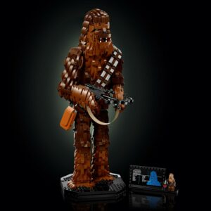 – Includes a Chewbacca LEGO minifigure The Chewbacca LEGO minifigure has a stud-shooting bowcaster and can be displayed next to the information plaque