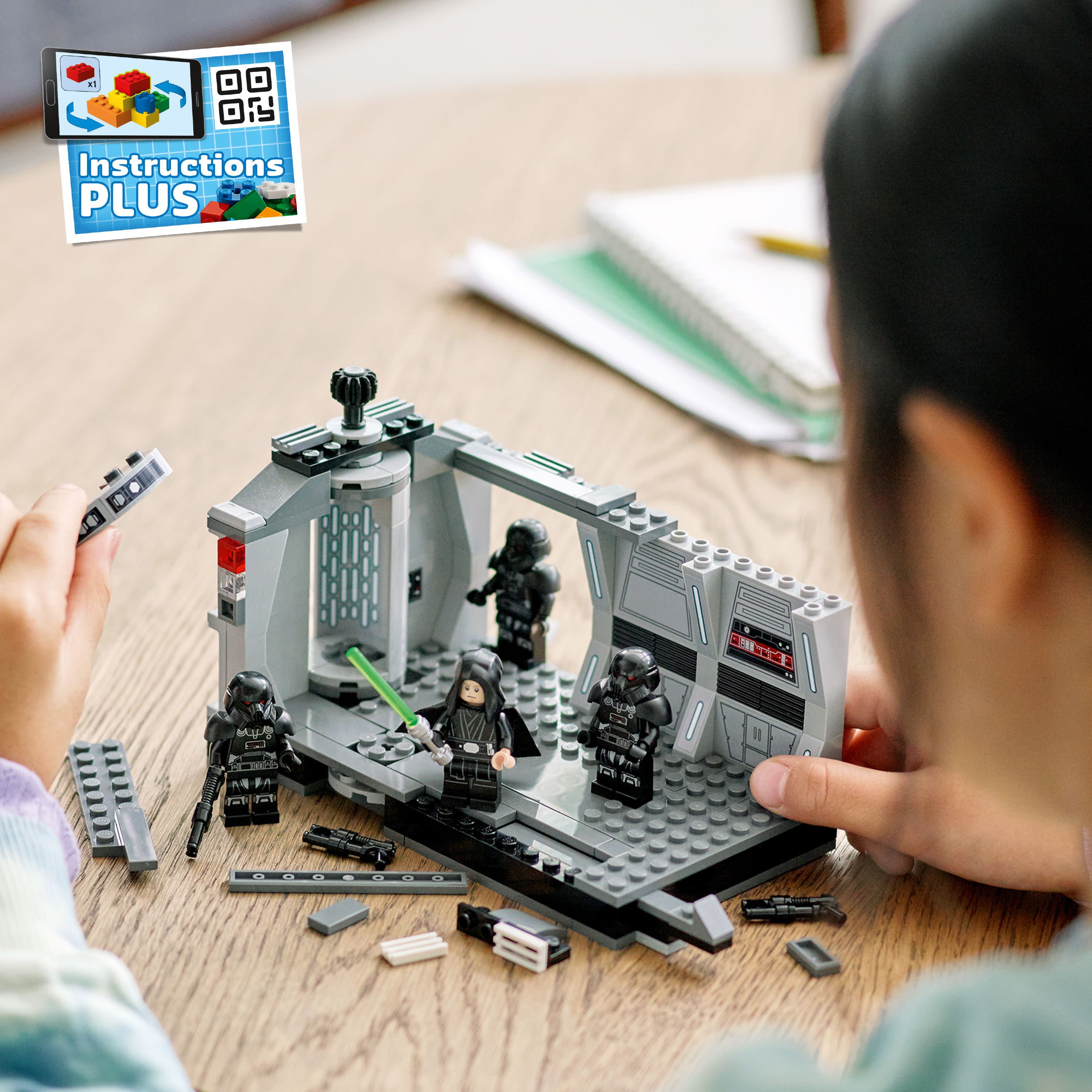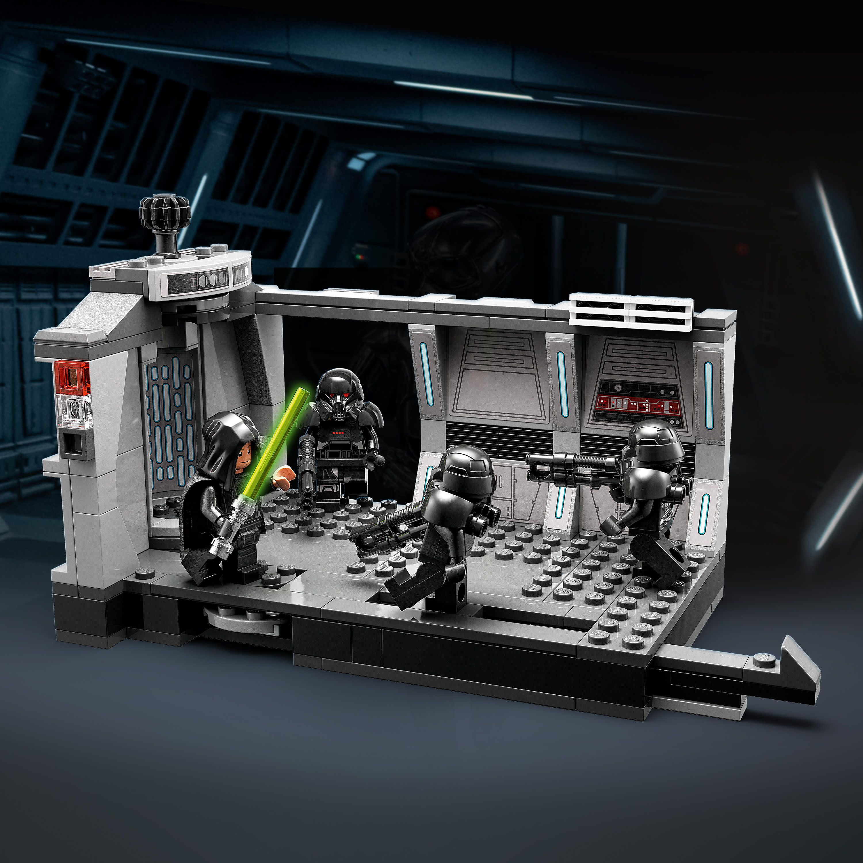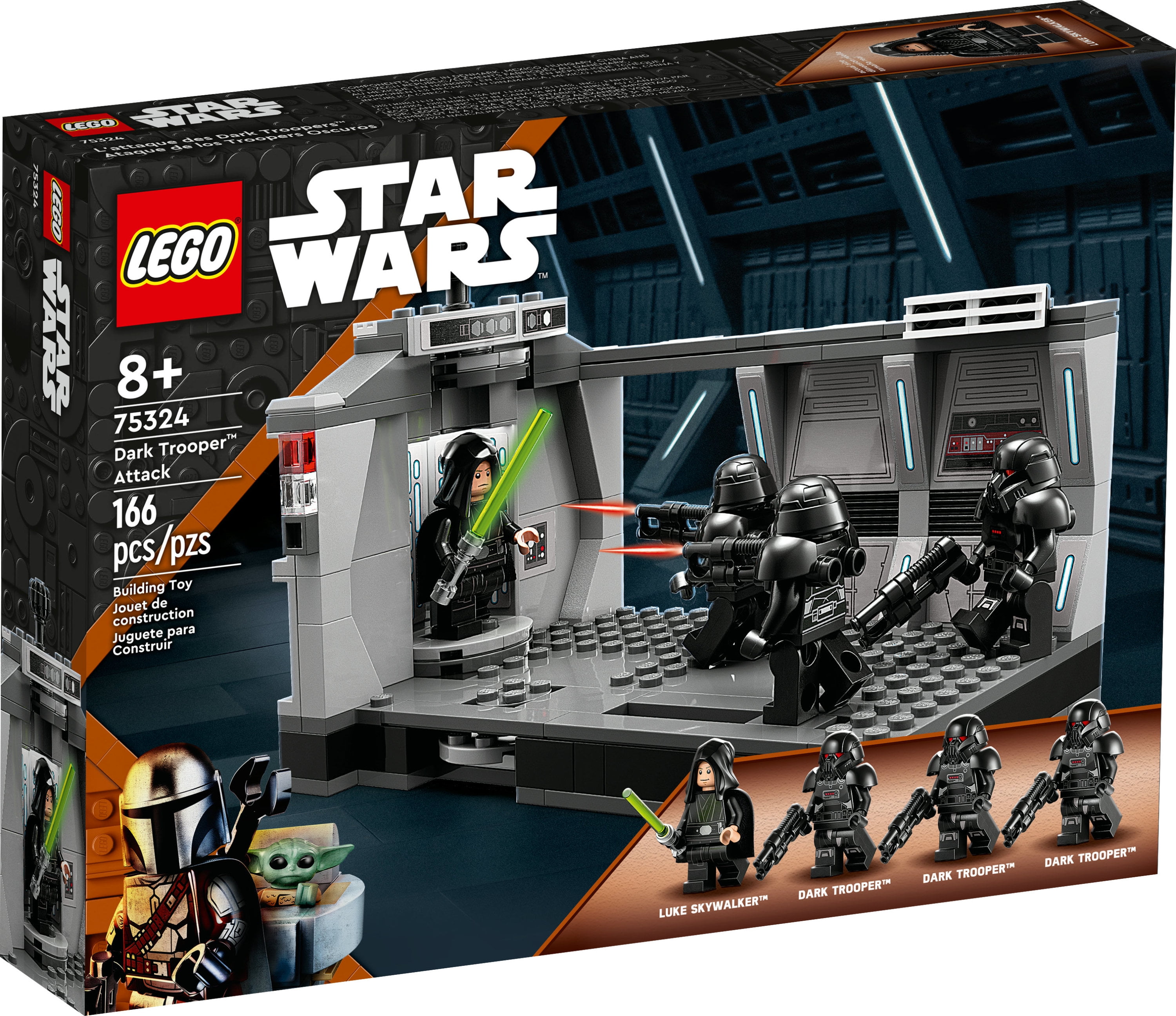 LEGO Star Wars set for Luke Skywalker vs. Dark Troopers battles Fans can relive Luke Skywalkers return in Star Wars: The Mandalorian Season 2 with this Dark Troopers Attack (75324) building toy 4 LEGO minifigures Luke Skywalker with a lightsaber, and 3 Dark Troopers, each with a blaster rifle, for creative role play Brick-built Imperial Light Cruiser interior scene, a revolving elevator, rotating battle platform for Luke Skywalker and a sliding Force platform for him to fend off a Dark Trooper Gift idea for ages 8 and up Give this 166-piece building toy as a holiday gift, birthday present or fun treat to creative kids who are into Star Wars: The Mandalorian Portable play The elevator/corridor measures over 4 in. (10 cm) high, 7 in. (18 cm) long and 3.5 in. (9 cm) wide and can fit in a child’s backpack with the LEGO minifigures for play on the go