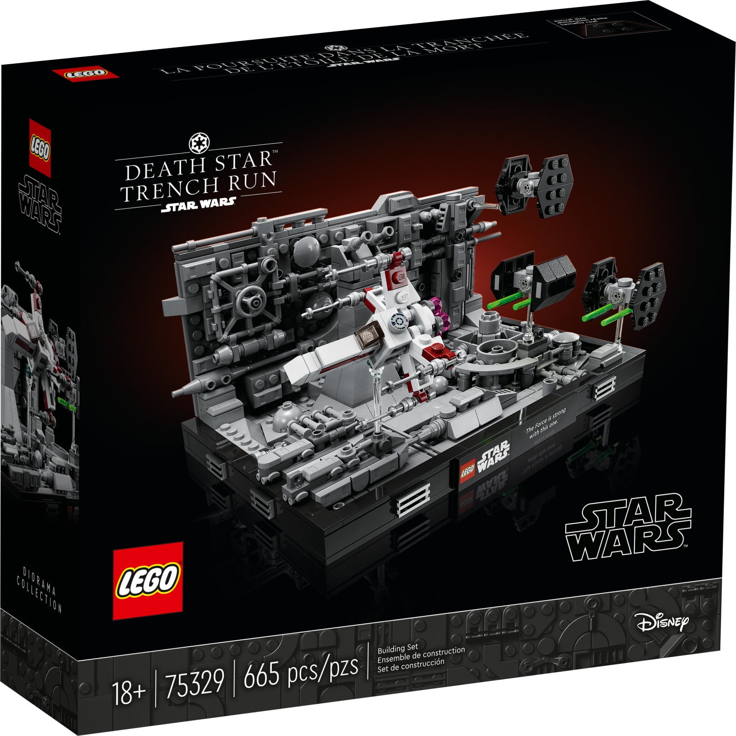 Channel Jedi-like focus and recreate a memorable moment from Star Wars: A New Hope with this Death Star Trench Run Diorama (75329) Star Wars LEGO set for adults. Capture a snapshot of that gripping scene in intricate detail, from the surface of the Death Star to the brick-built models of Darth Vader’s TIE Advanced fighter and 2 TIE fighters in hot pursuit of Luke Skywalker’s X-wing. Attach the plaque bearing Darth Vader’s words (“The Force is strong with this one”) to complete a nostalgia-evoking Star Wars memorabilia centerpiece. This build-and-display Star Wars room décor model makes a super treat for yourself or a Star Wars gift for other adult fans and experienced LEGO builders. It also comes with step-by-step instructions to guide you through every step of the complex build. It began a long time ago, in a galaxy far, far away. Now the saga continues in your own home with LEGO Star Wars model building kits. Explore the stellar array of sets designed specifically for adults, including other new-for-May-2022 dioramas. Measures over 10 cm (4 in.) high, 22 cm (8.5 in.) wide and 15 cm (6 in.) deep. Contains 665 pieces.