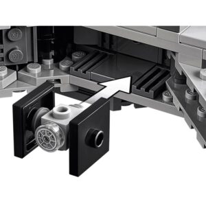 – 1,336-piece LEGO build with 6 minifigures, handle built into the bridge, 2 rotating turrets, 2 mini TIE Fighters, launcher, and piece separator