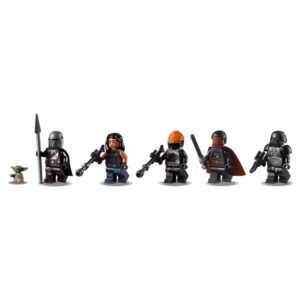 – Mandalorian Minifigures include The Mandalorian, Cara Dune, Fennec Shand, Moff Gideon, a Dark Trooper, plus a LEGO figure of Baby Yoda
