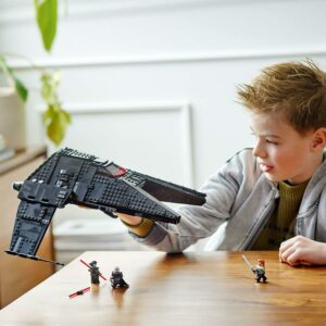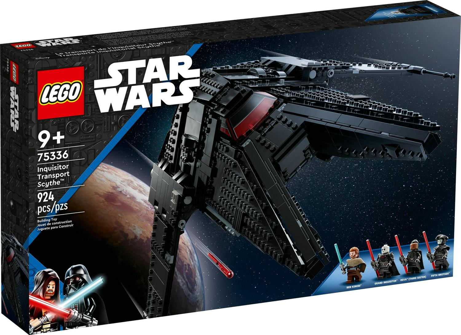 Kids can play out Jedi-hunting missions from Star Wars: Obi-Wan Kenobi with LEGO Star Wars Inquisitor Transport Scythe (75336) buildable toy for kids ages 9+ years old. This buildable toy starship has adjustable wings for flight and landing modes, 2 spring-loaded shooters and an access ramp. The cockpit opens for easy viewing of the detailed interior, which has 3 minifigure seats and storage clips for lightsabers. There are also LEGO Star Wars minifigures of Ben Kenobi with his blue lightsaber, the Grand Inquisitor, Reva (Third Sister) and the Fifth Brother with lightsaber weapons for creative role play. Kids can feel the dark side of the Force with the Inquisitor Transport Scythe! Reva is in the pilot seat, and the Grand Inquisitor and the Fifth Brother are on board for a sinister mission. Kids flip down the wings for flight mode and fire the spring-loaded shooters. On landing, then lower the ramp and prepare for battle. Can Ben Kenobi elude the Inquisitors with their double-bladed lightsabers A cool Star Wars gift idea for trendsetting kids ages 9 and over, the set includes printed building instructions. And check out the LEGO Building Instructions app, which has zoom and rotate viewing tools to enhance the creative experience. This buildable LEGO Star Wars starship toy measures over 5.5 in. (14 cm) high, 14.5 in. (37 cm) long and 9.5 in. (24 cm) wide. Contains 924 pieces.