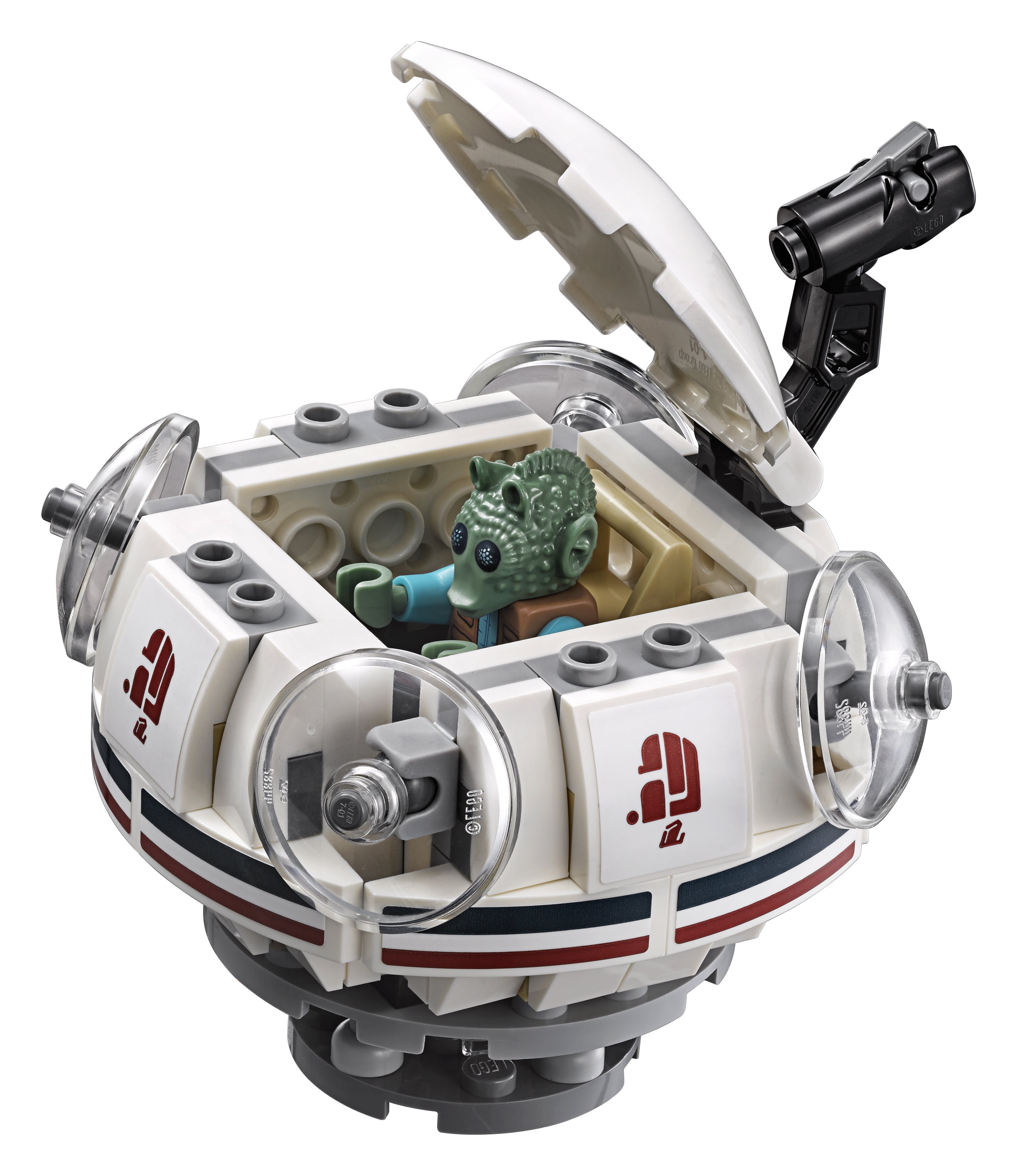 Recreate iconic Star Wars: A New Hope scenes at Tatooine?s most perilous tavern, Mos Eisley Cantina. This detailed model has a modular, open-out design for easy play. Slide the door and enter the bar to reveal the detailed interior, which includes a counter for serving refreshments and 2 seat-tipping functions for reenacting the unforgettable encounter between Han Solo and bounty hunter, Greedo. You also get a Ubrikkian 9000 pod with an opening minifigure cockpit and stud shooter on top. This LEGO Star Wars toy includes 4 minifigures.