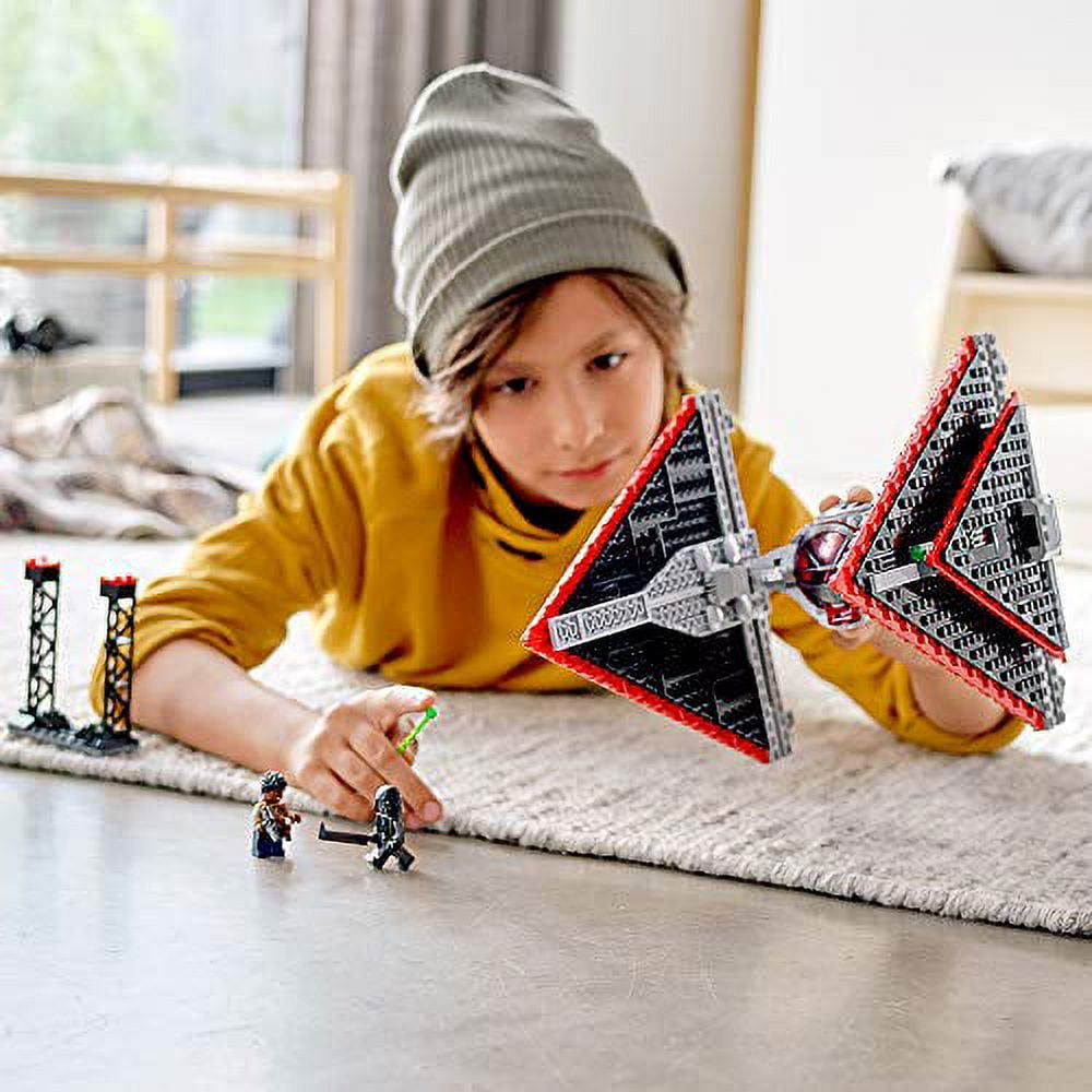 Let kids fly First Order pilot missions with this buildable Sith TIE fighter model featuring a slick, new-for-January-2020 design, just like in Star Wars: The Rise of Skywalker! The TIE fighter features an opening minifigure cockpit and 2 spring-loaded shooters. There’s also a docking tower for launch, landing and to display the construction model, plus 3 minifigures for role-play action! The First Order TIE Pilot, Knight of Ren and Finn minifigures have cool battle accessories, and this set combines perfectly with Poe Dameron’s X-wing Fighter (75273) for epic First Order vs Resistance battles! This LEGO Star Wars building set sparks imagination, offers endless build-and-play fun, and is a great holiday, birthday or anyday gift for kids ages 9+ who love Star Wars, LEGO Star Wars and space battle toys The Star Wars TIE fighter build measures over 8” (21cm) high, 9” (24cm) long and 8” (22cm) wide, so it makes a striking construction model to display in any room when not being flown on First Order missions!