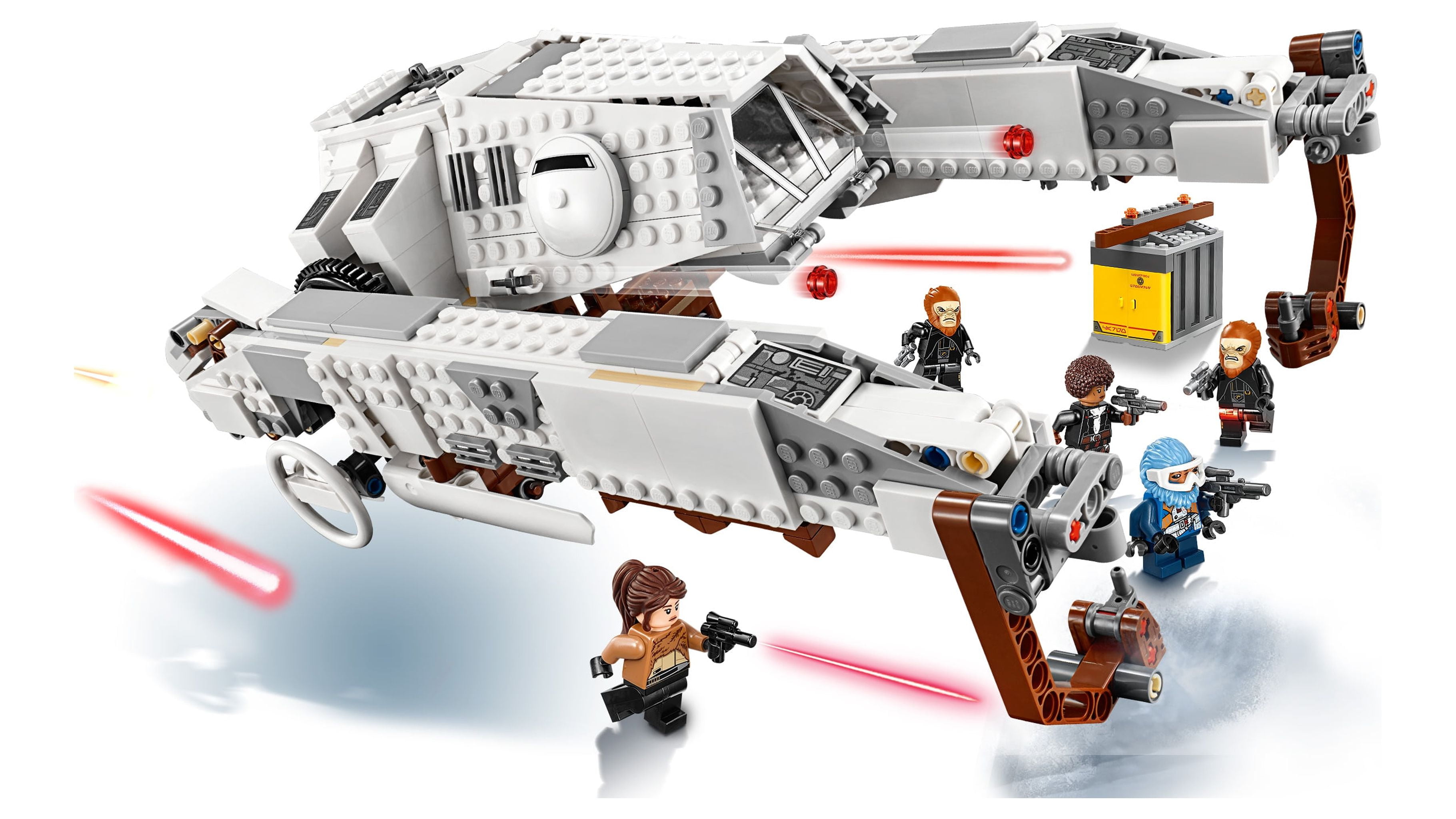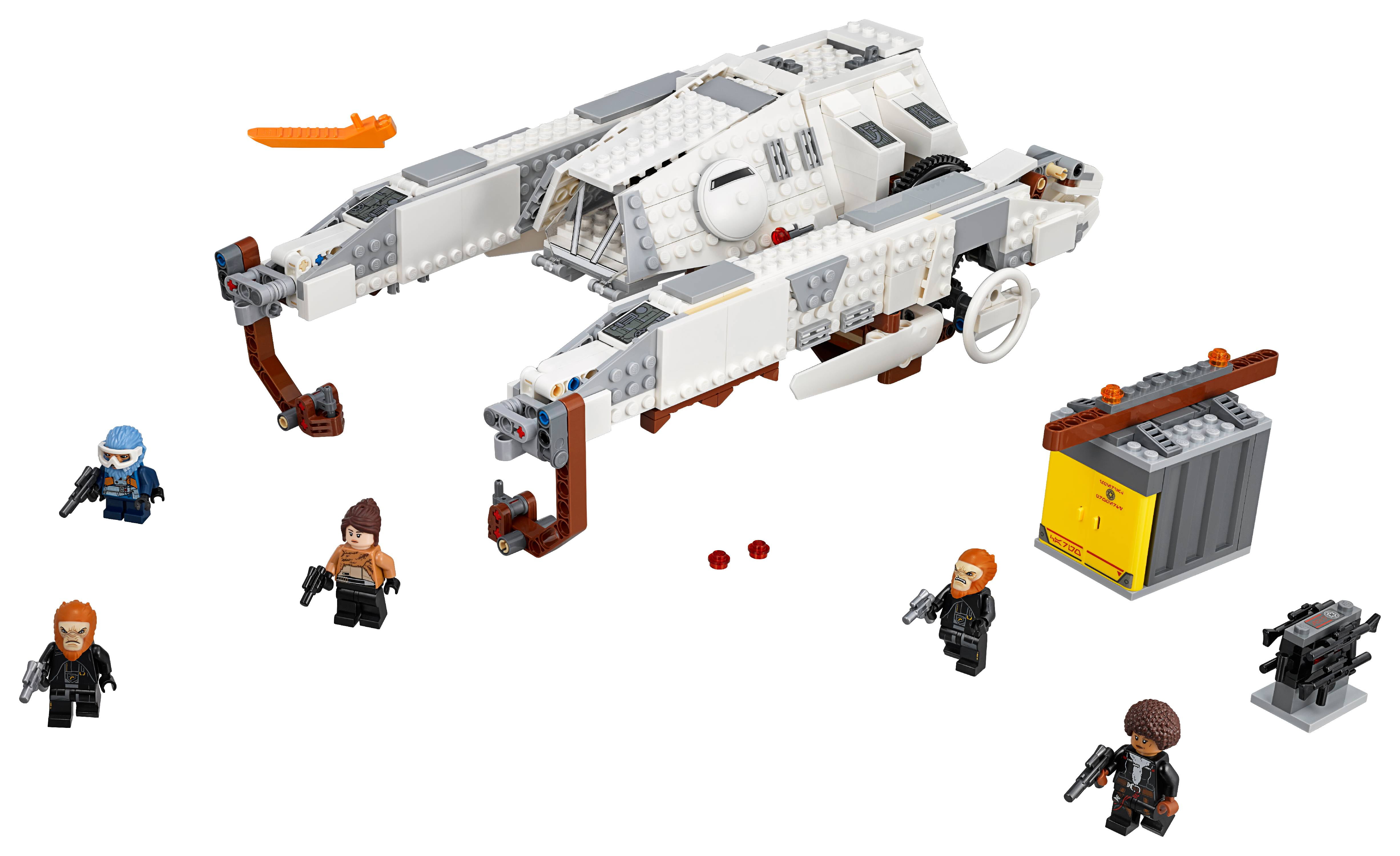 Includes LEGO minifigures: Qira, Val, Rio Durant and 2 of Dryden’s guards Features rotating pylons with movable lifting hooks, an opening minifigure cockpit, side-mounted stud shooters and a platform underneath for carrying minifigures Includes a buildable, opening cargo container with lifting beam Load the container, hook it up and lift it away! Rotate the lifter arms for landing and flying modes Weapons include 2 blasters, 3 blaster pistols and 4 rack-mounted blaster rifles inside the container Combines with the 75215 Cloud-Rider Swoop Bikes and 75217 Imperial Conveyex Transport for the ultimate high-speed train heist! Recreate exciting scenes from Solo: A Star Wars Story! Imperial AT-Hauler measures over 4inches (12cm) high, 12inches (32cm) long and 4inches (21cm) wide