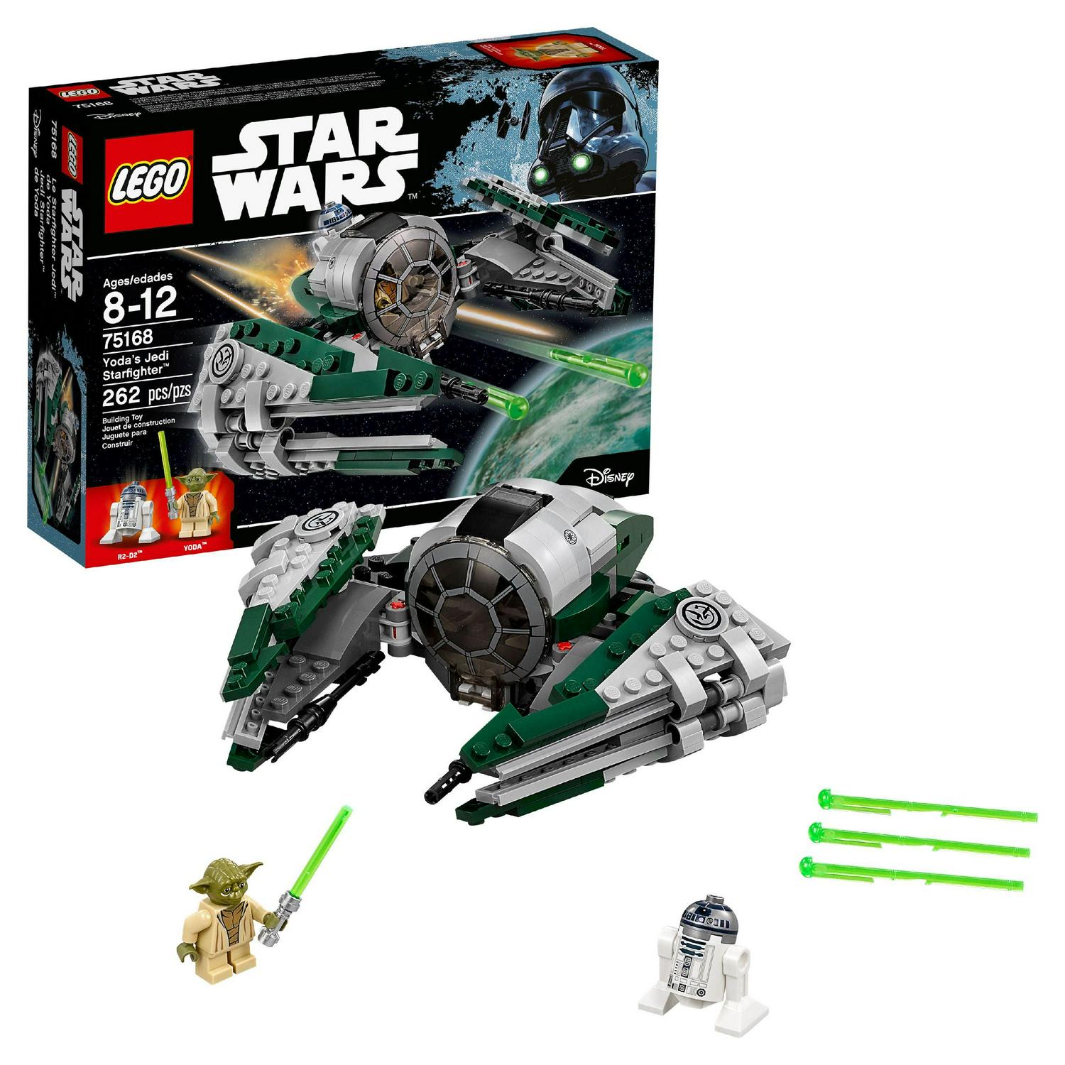 Add a classic ship to your LEGO Star Wars collection with Yoda’s Jedi Starfighter. The diminutive Jedi Masters craft of choice features folding wings, front-and-top-opening Minifigure cockpit, space for R2-D2 behind, and 2 laser cannons and spring-loaded shooters. Includes a Minifigure and R2-D2. LEGO Star Wars building toys are compatible with all LEGO construction sets for creative building. Build Jedi Master Yoda’s starfighter with folding wings and spring-loaded shooters.